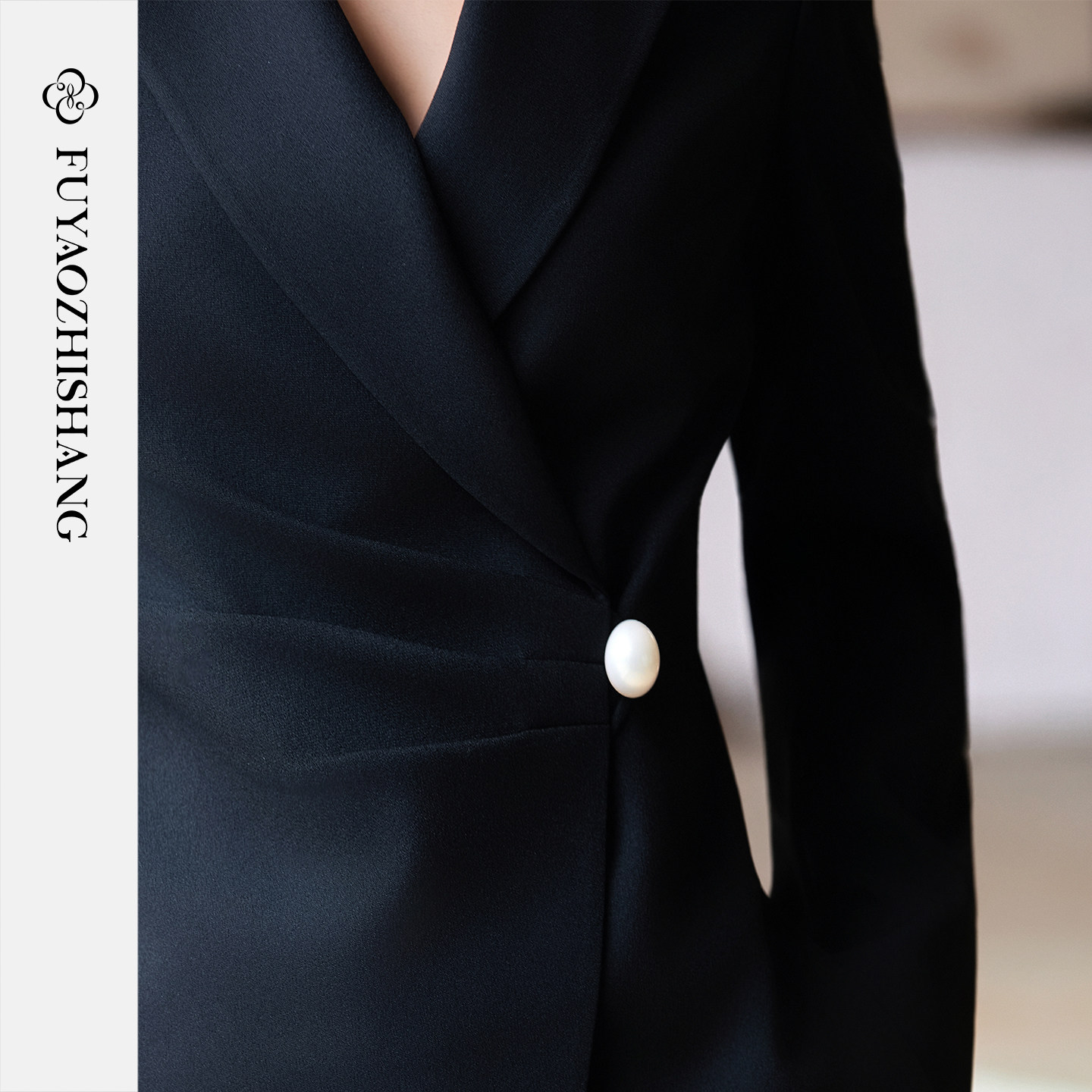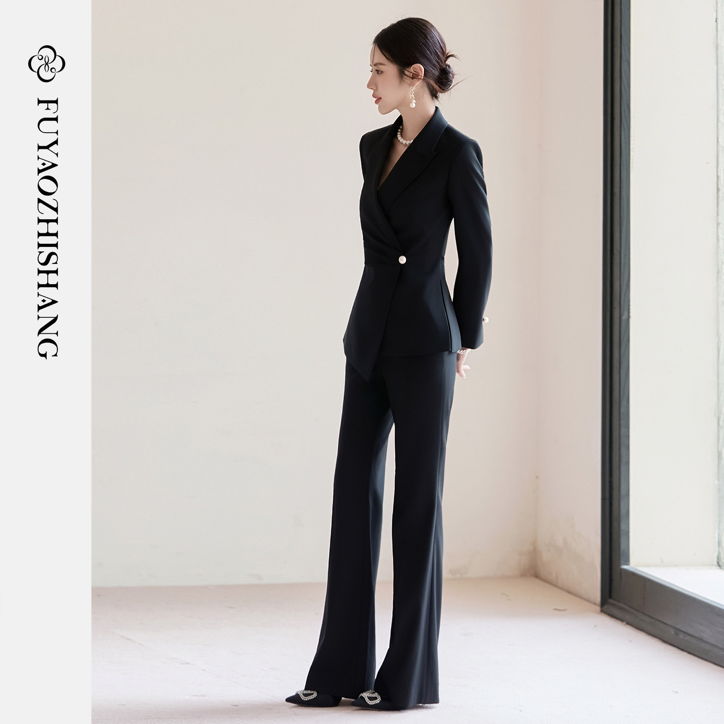 女2025秋高级感醋酸西服外套微喇裤 套装 两件套 黑色西装 FUYAO扶摇