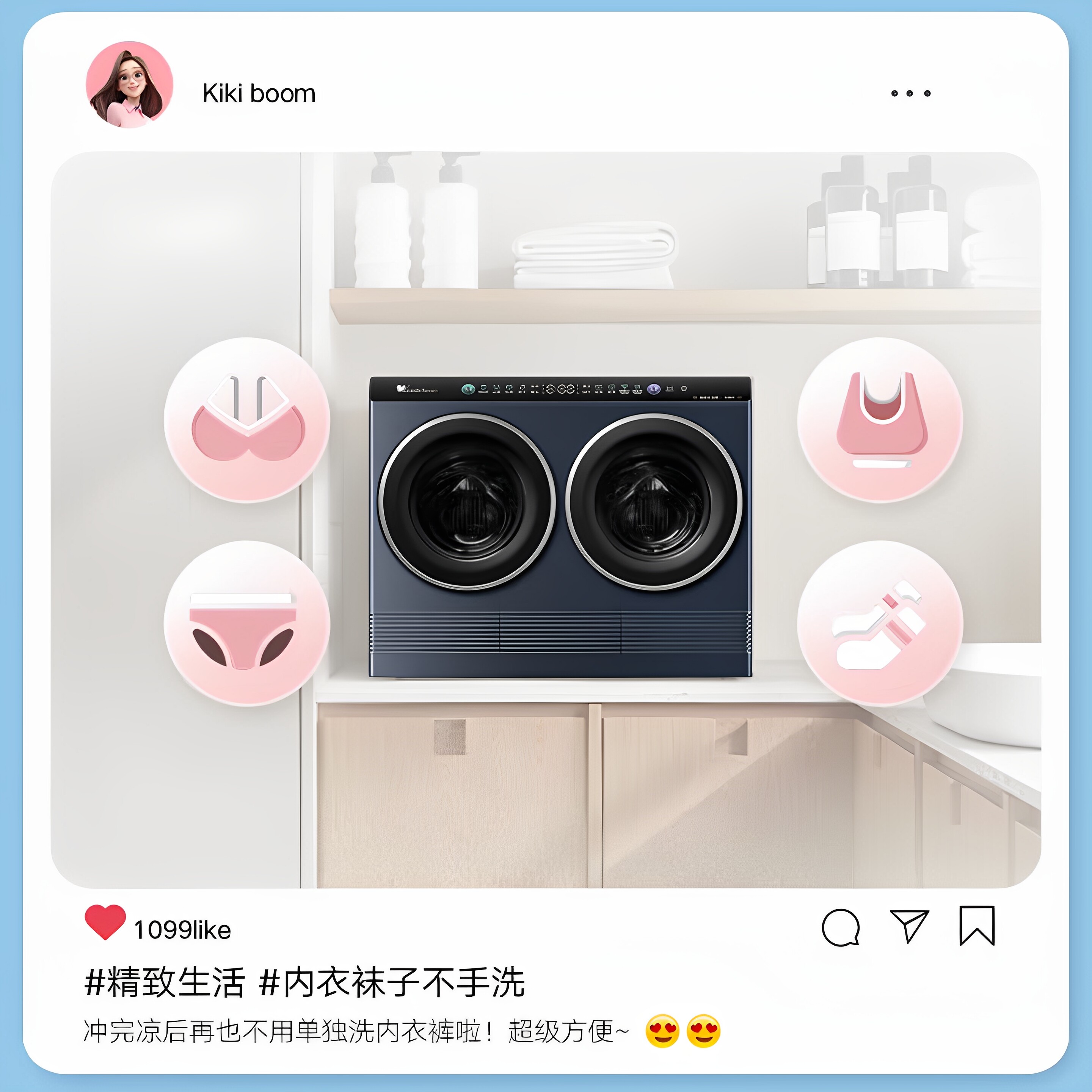 组合 小天鹅迷你懒人洗烘一体双筒三筒分区洗衣机套装 迷你小乌梅
