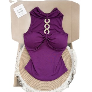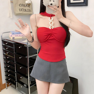 纯欲风性感辣妹圆环挂脖吊带背心女带胸垫高级感夏季 内搭美背上衣