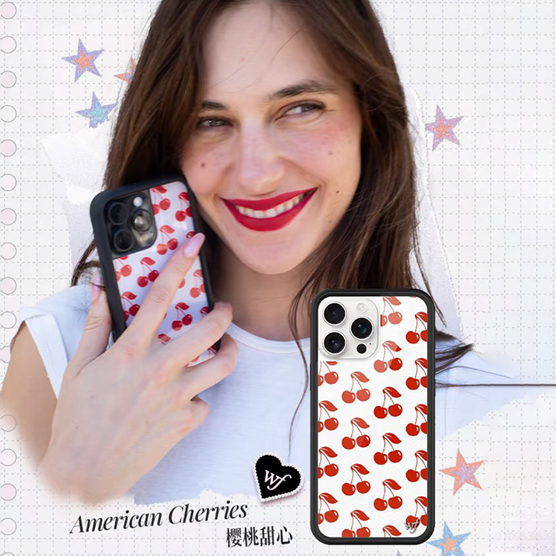 plus苹果16Pro手机壳欧美经典 wf手机壳甜心樱桃American 13ProMax 防摔保护套17 Cherries适用iPhone15