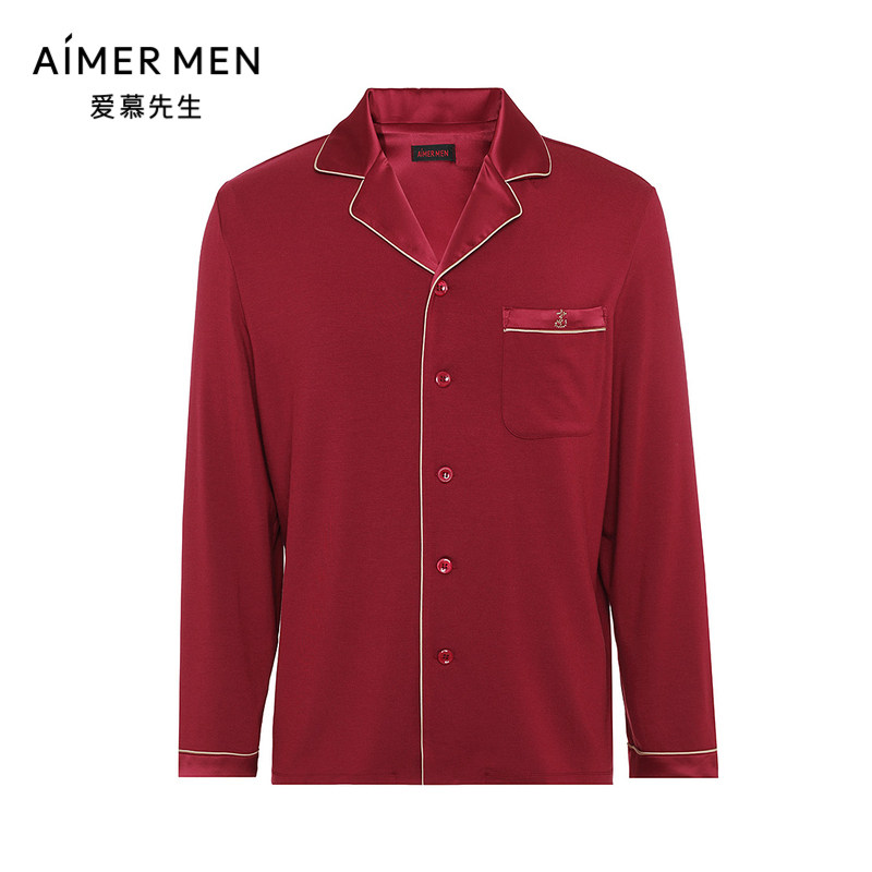 NS41J192 长裤 爱慕先生睡衣男士 红色含桑蚕丝可外穿薄家居服长袖