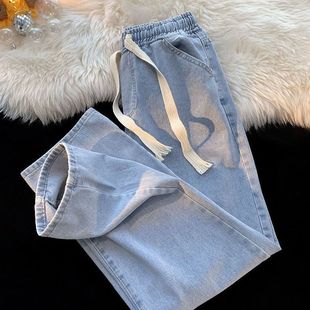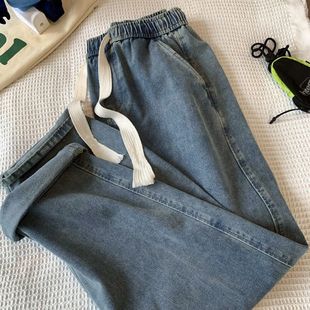 男款 子潮牌水洗做旧阔腿长裤 春季 百搭裤 子 宽松美式 复古直筒牛仔裤