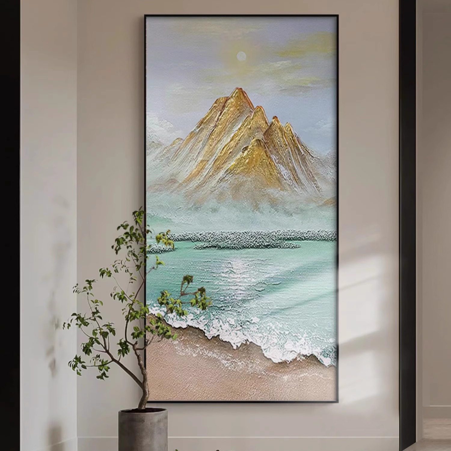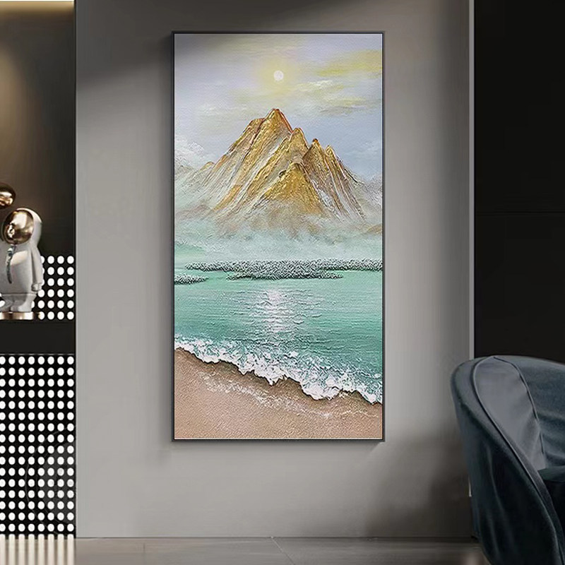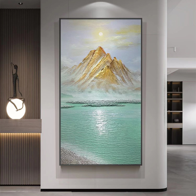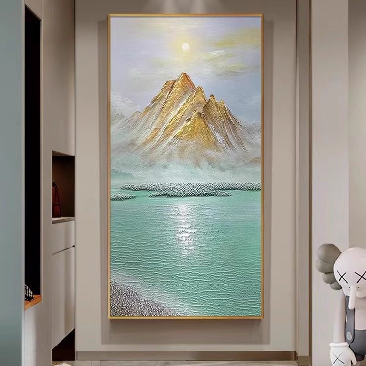 玄关手绘油画家大业大走廊过道尽头大芬村挂画入户正对门肌理壁画