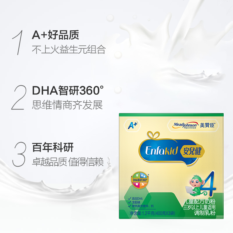 3岁或以上 儿童配方奶粉4段 美赞臣安儿健A 1.2kg×1盒 官方