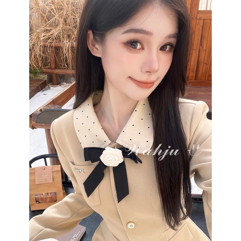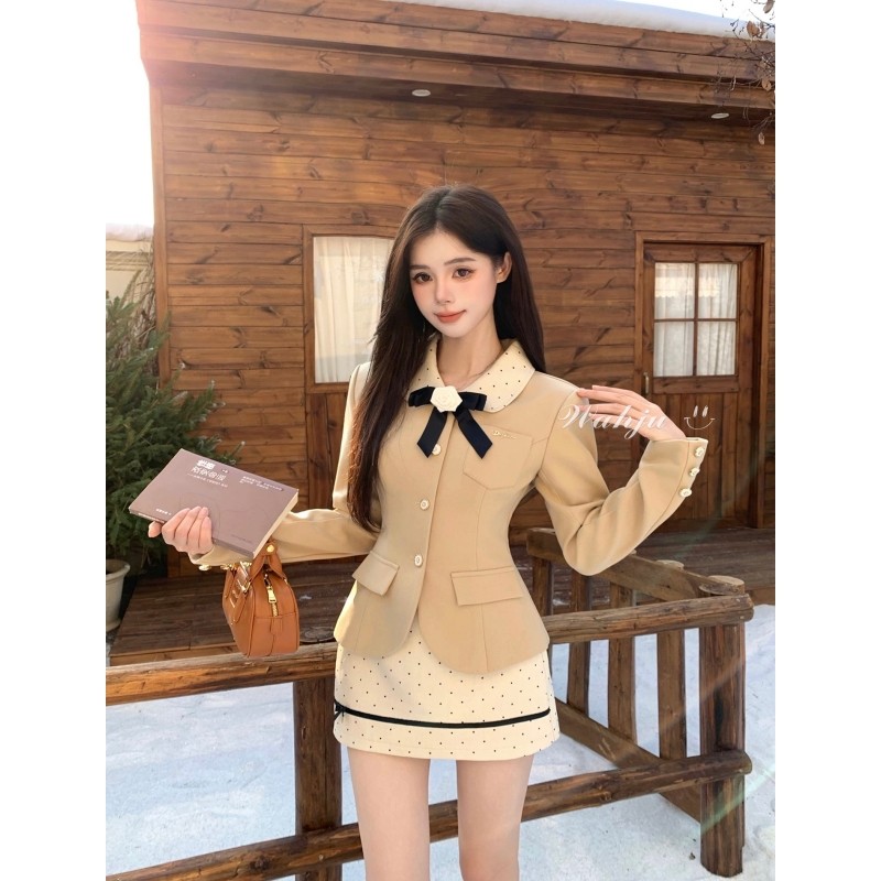 外套女秋冬高级感名媛短裙套装 法式 复古千金学院风波点娃娃领西装