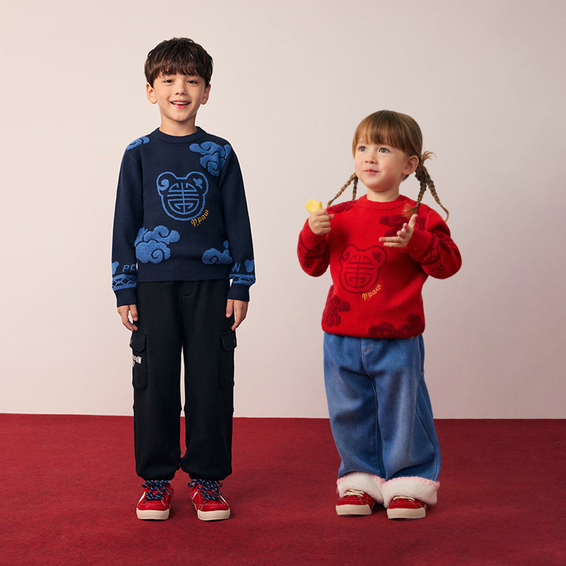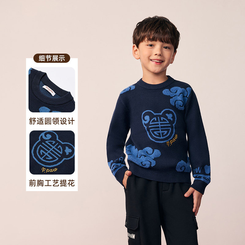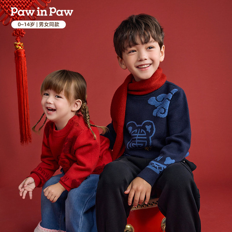 男女童新中式 26年新款 PawinPaw卡通小熊童装 圆领毛衣宽松 新年