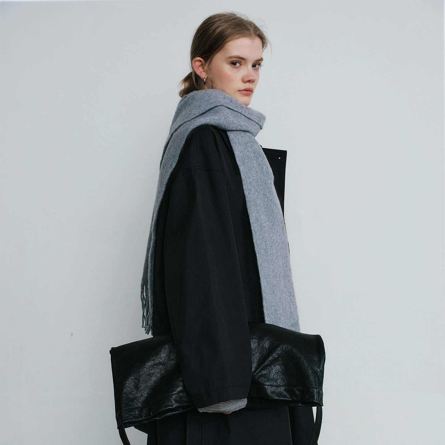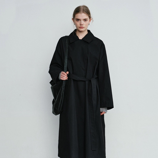 CulturE秋冬小众毛绒廓形宽肩毛呢大衣重磅宽松绑带收腰长款 风衣