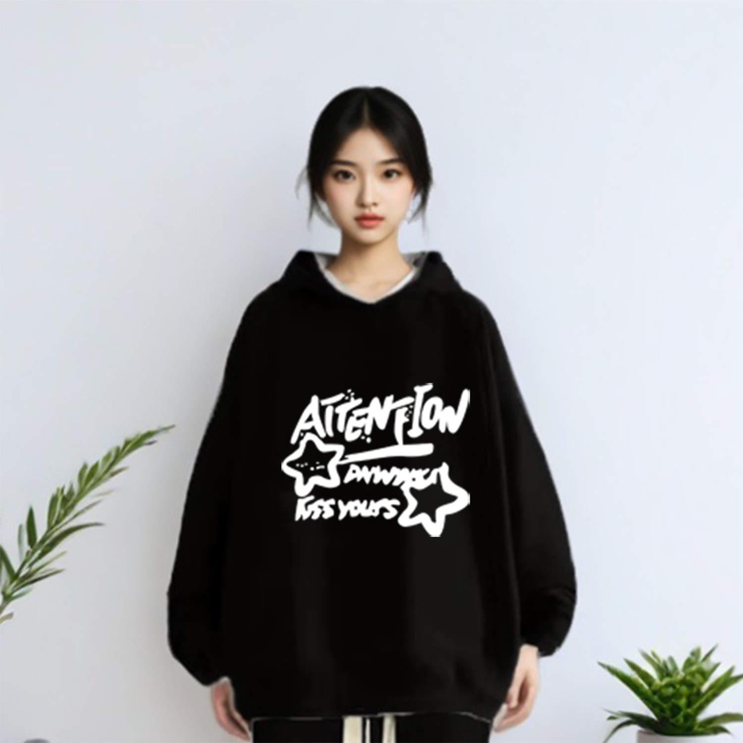 黑色不起球连帽卫衣女纯色长袖 宽松款 秋冬季 加绒上衣服装 2025爆款