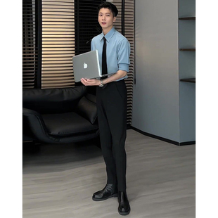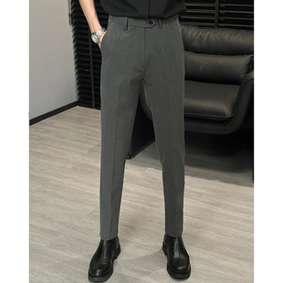 男士 裤 九分商务休闲黑色高级灰长裤 修身 子男 西裤 加绒加厚裤 男西装