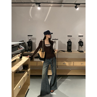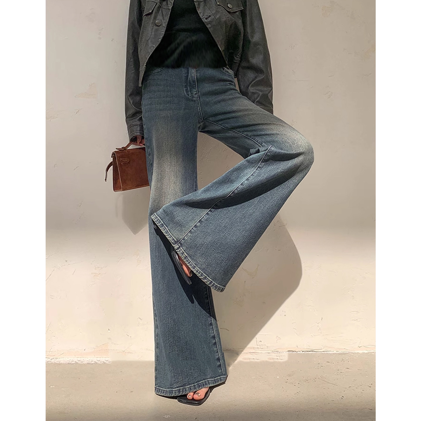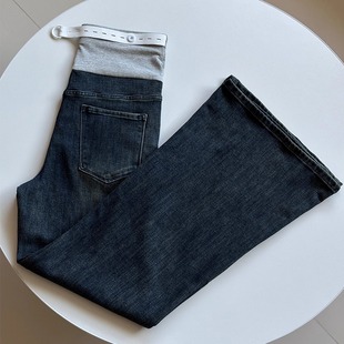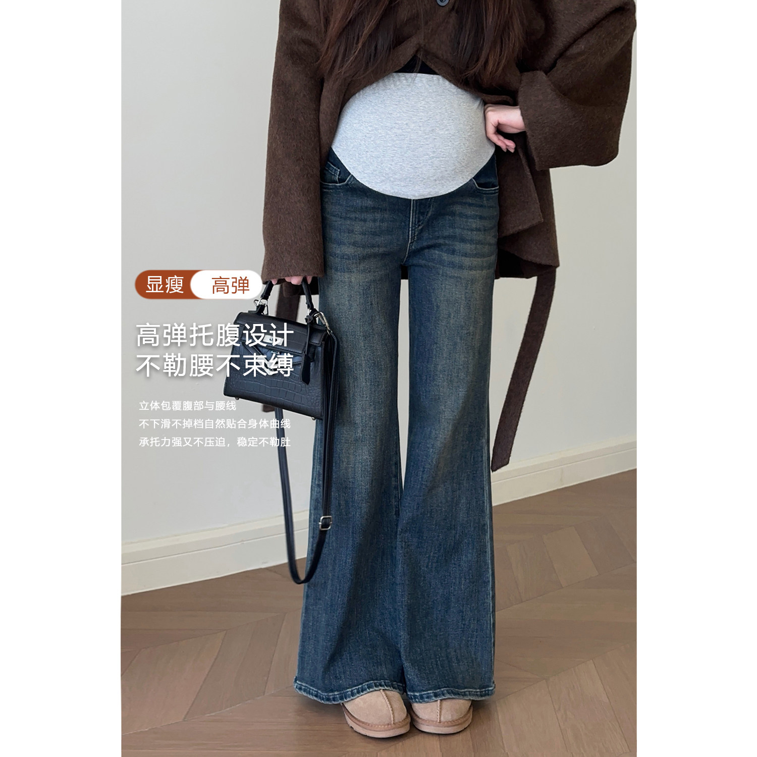 外穿显瘦孕期托腹长裤 2025新款 子秋冬季 复古蓝孕妇拖地牛仔喇叭裤