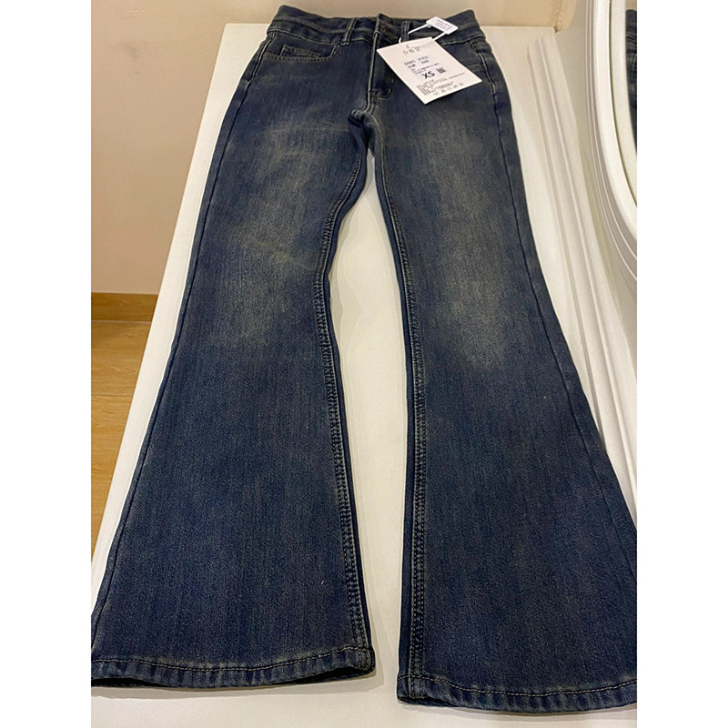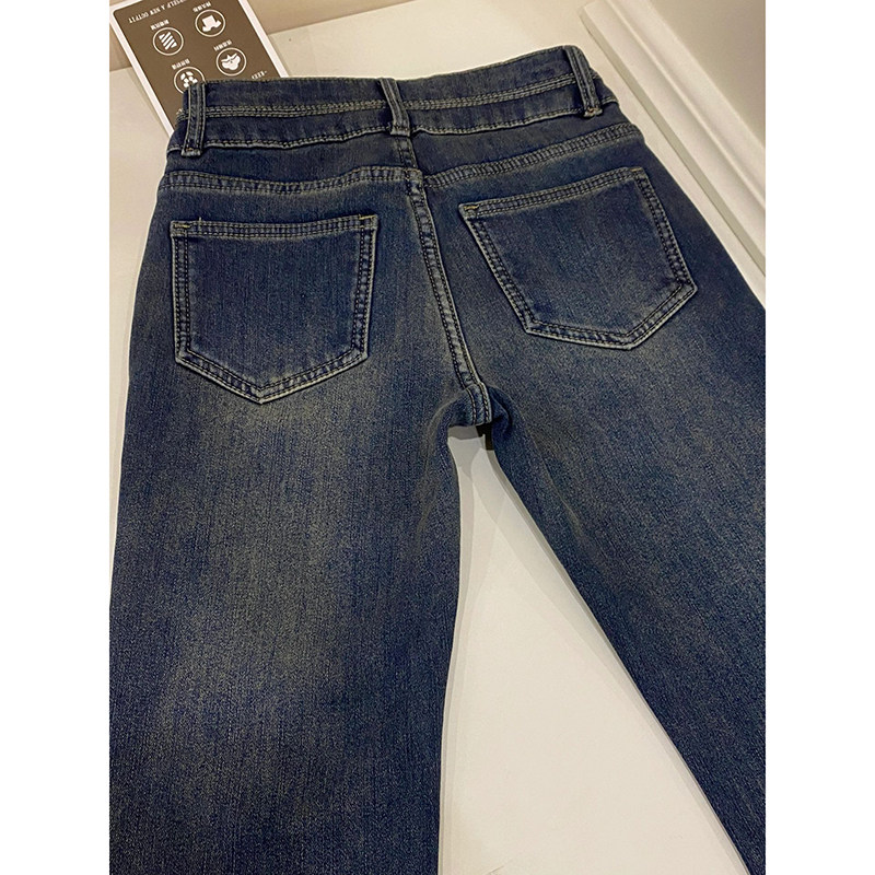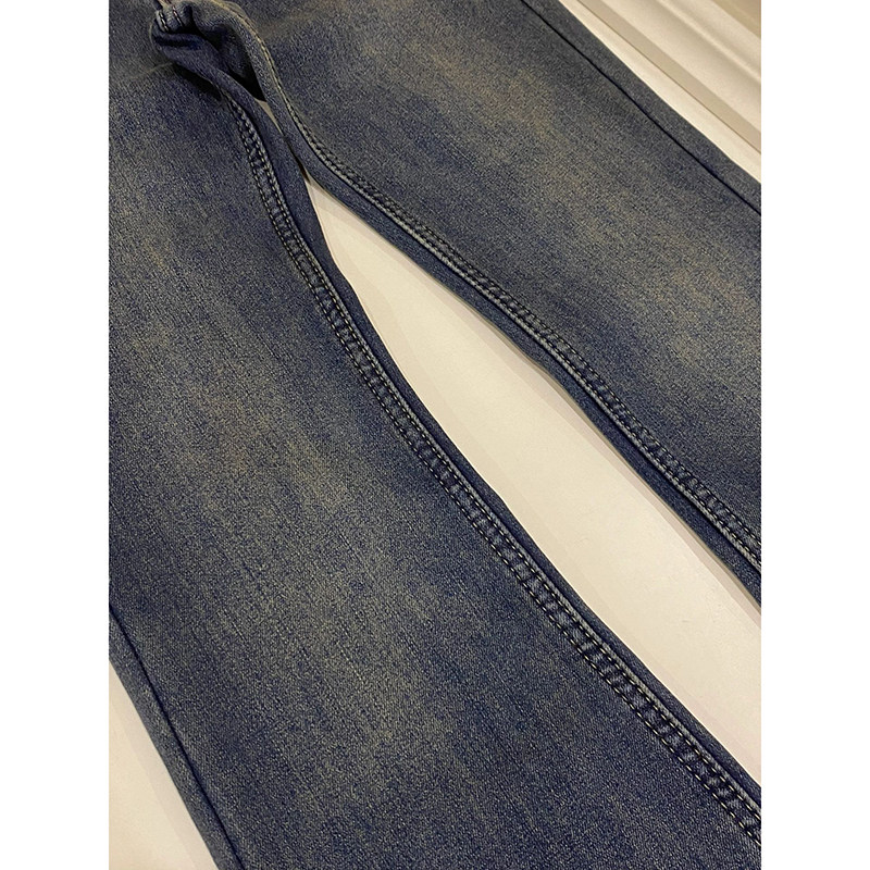 马蹄微喇叭拖地裤 高腰显瘦修身 女加绒2025秋冬季 水泥灰复古牛仔裤