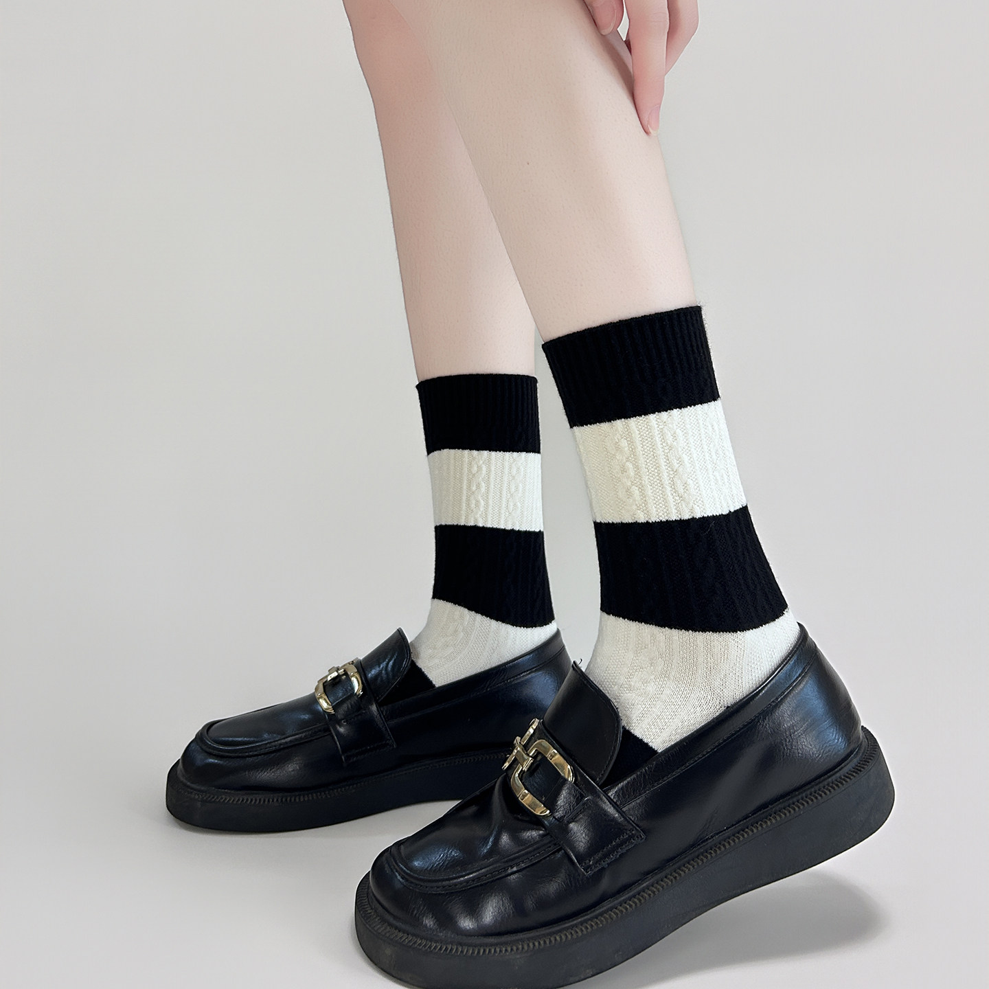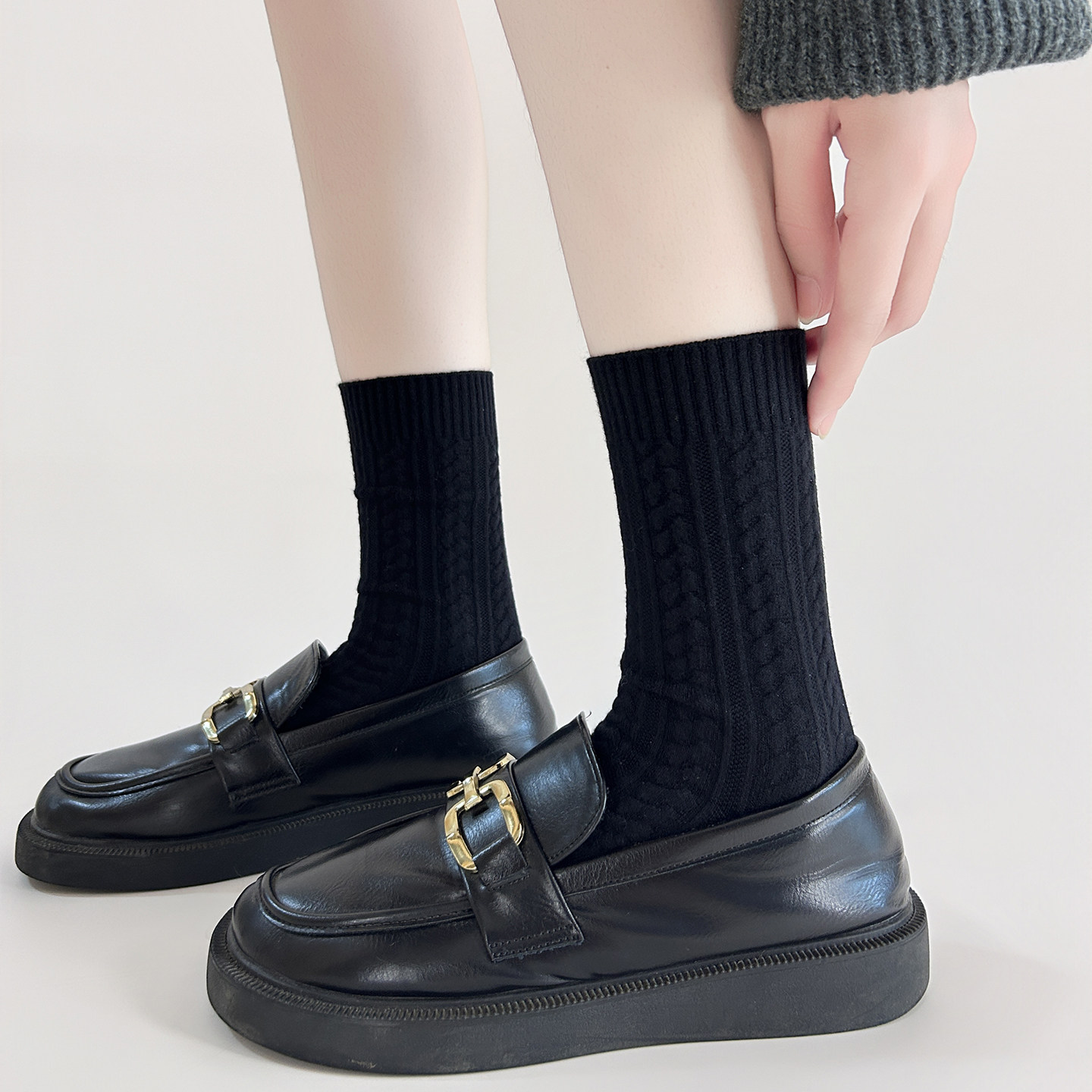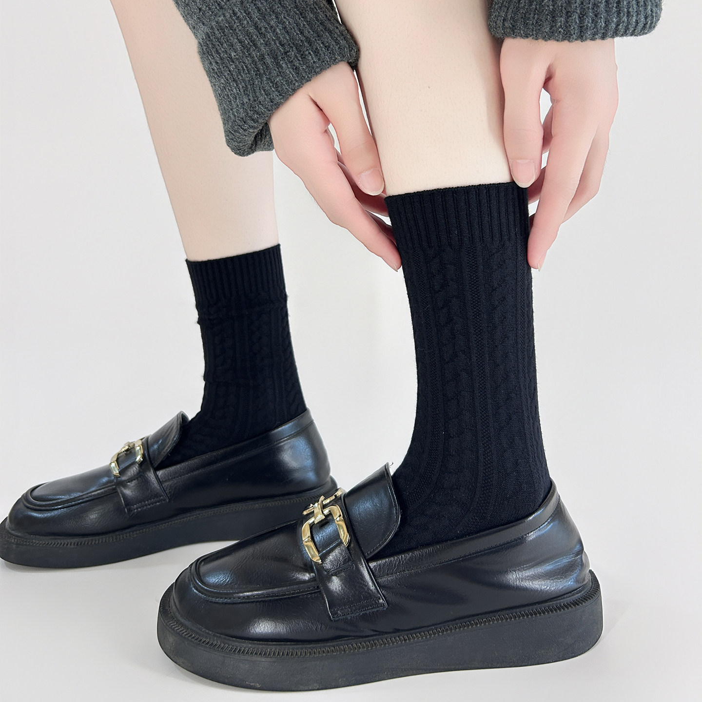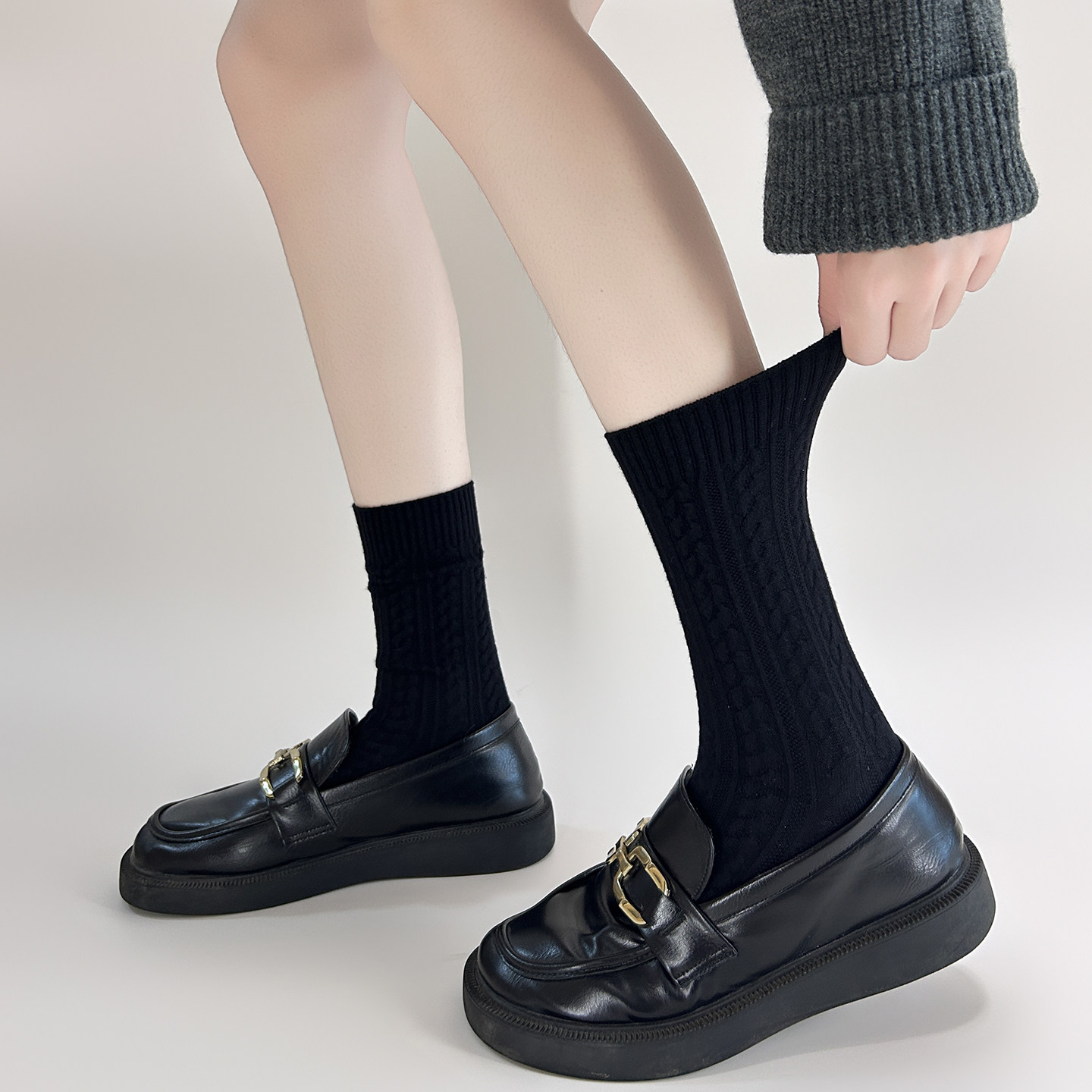 日系复古镂空羊毛小腿袜子女中筒堆堆袜秋冬保暖配靴子长筒袜靴袜