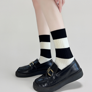 韩系中筒袜子女士纯色休闲长腰竖条纹堆堆吸汗防臭春秋款 美腿月子