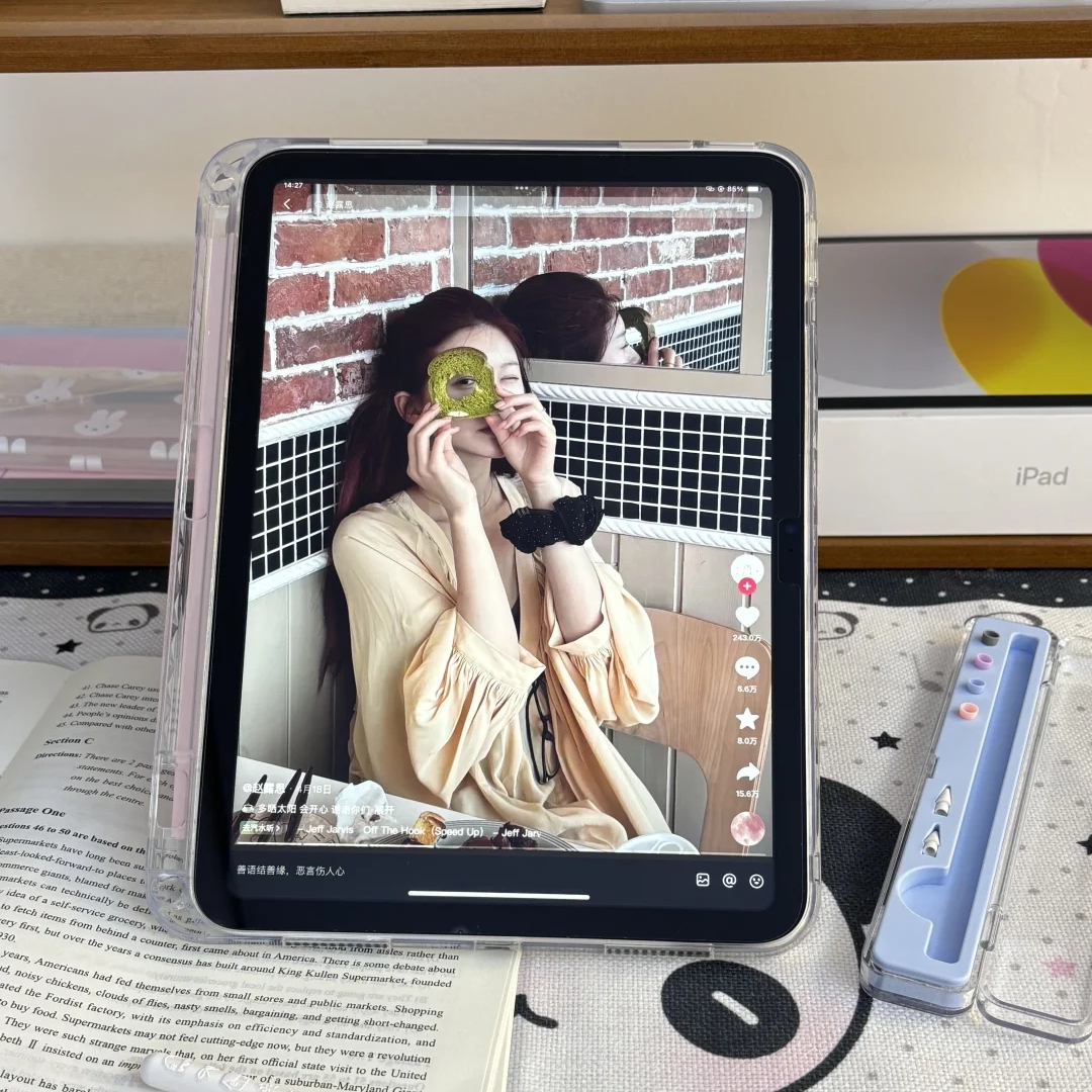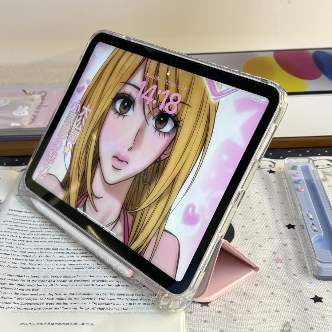 彩色星星韩系原创插画ipad壳3 y折平板保护套防弯亚克力背板适用于ipad苹果air4567pro11寸A16笔槽