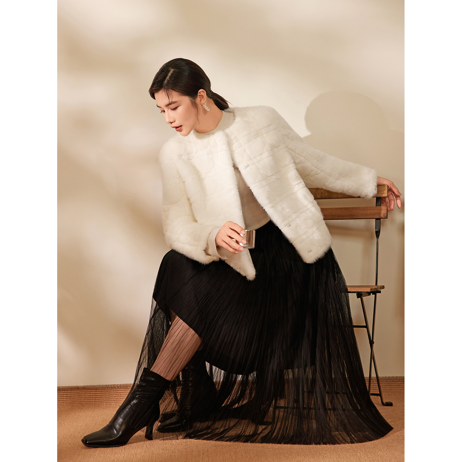 橘子树在哪儿美式 皮毛一体保暖夹棉外套 复古高级感机车皮衣女冬季