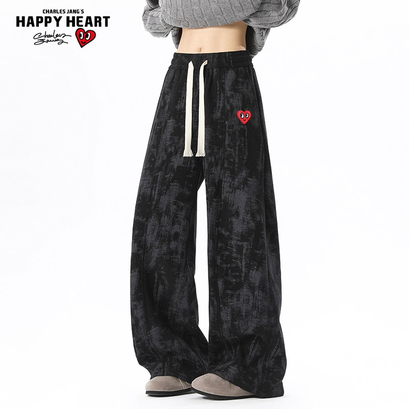 子 爱心刺绣直筒垂感长裤 查尔斯桃心撞色高街休闲裤 男加绒保暖冬季