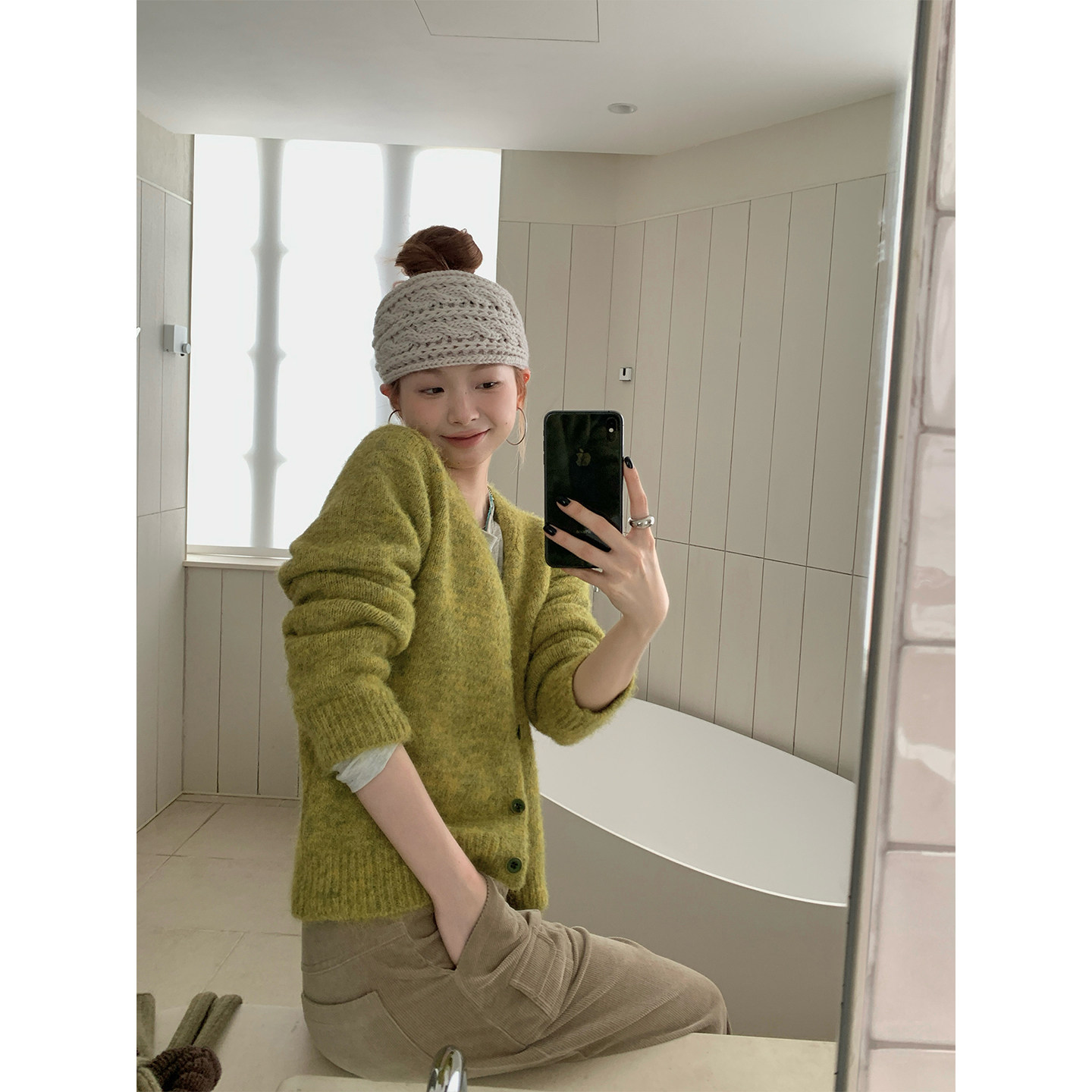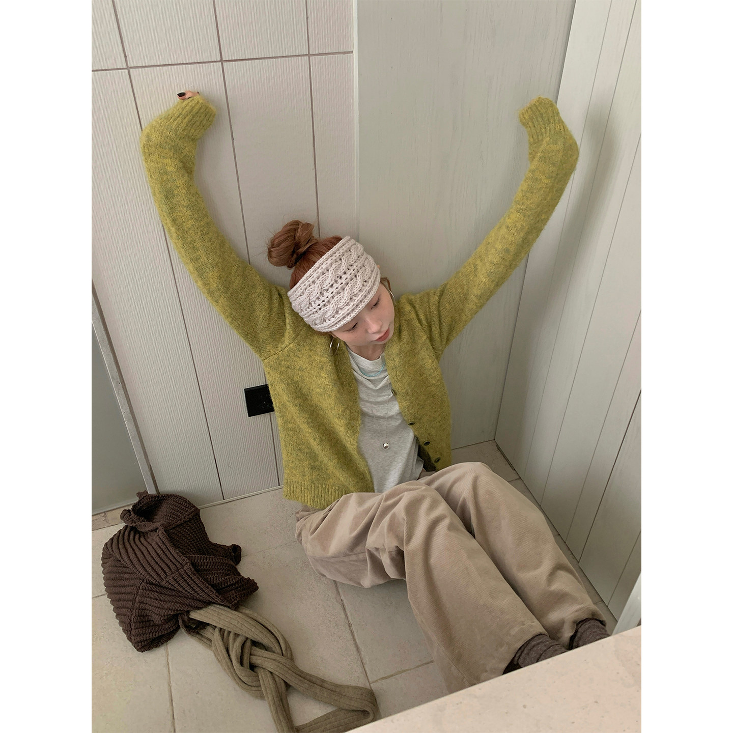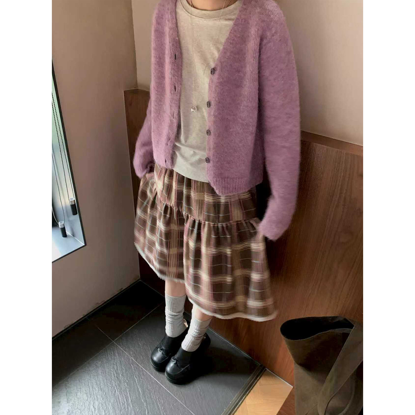 休闲软糯慵懒外套女 2026春新款 CCKOK 彩纱混色V领针织毛衣开衫