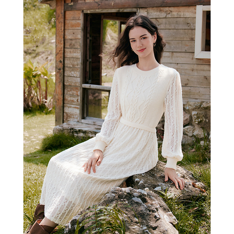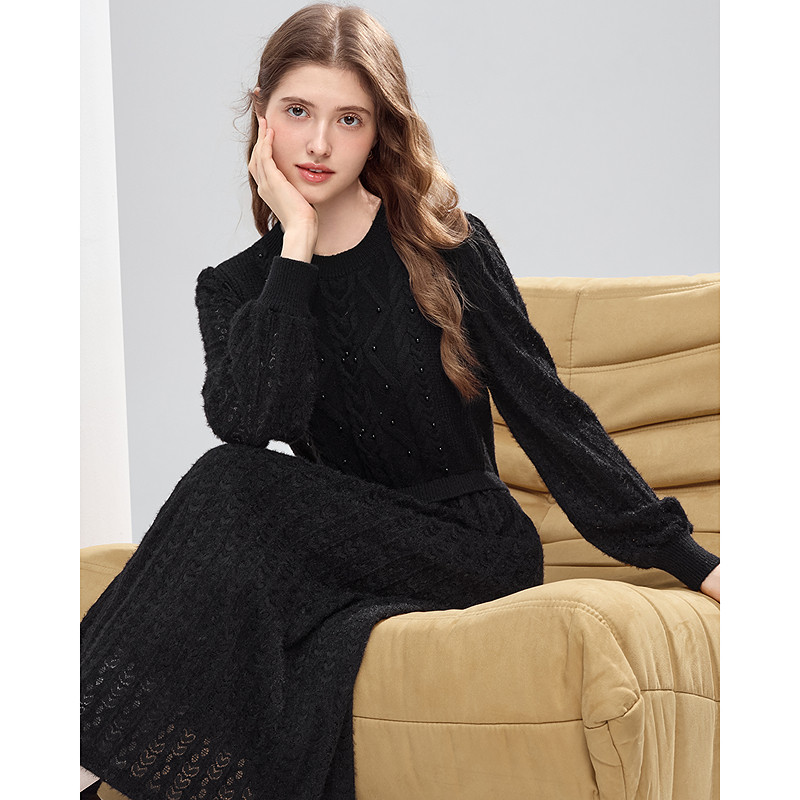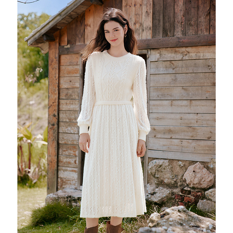 富家千金一字肩镂空温柔针织连衣裙女秋冬 心动尤莉 PROJECT