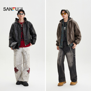 悟空有货美式 潮牌保暖百搭棉衣外套 大理石座山雕连帽棉服男女冬季