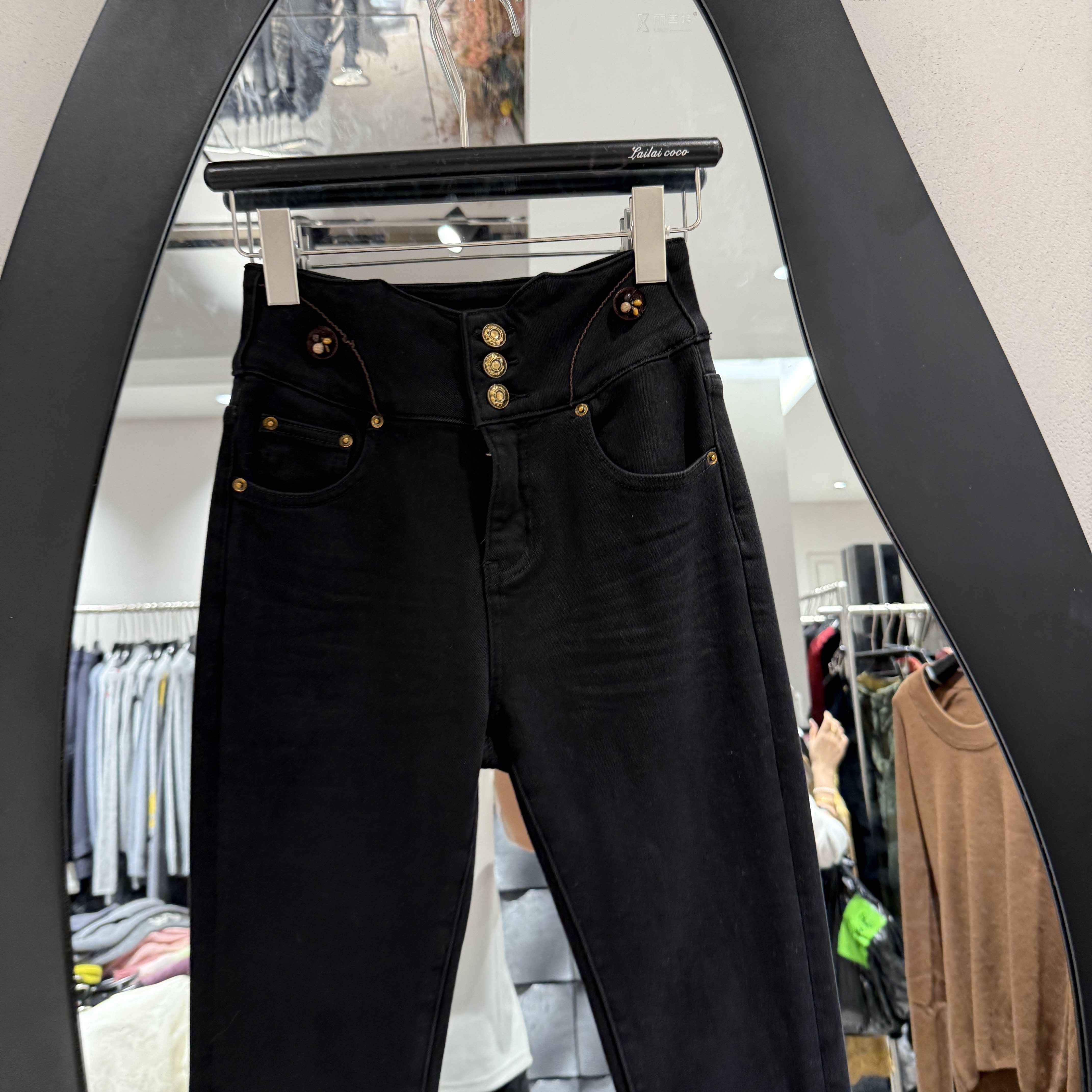 欧洲站2025秋冬款 36772 高腰三粒扣百搭显瘦微弹加薄绒小脚牛仔裤