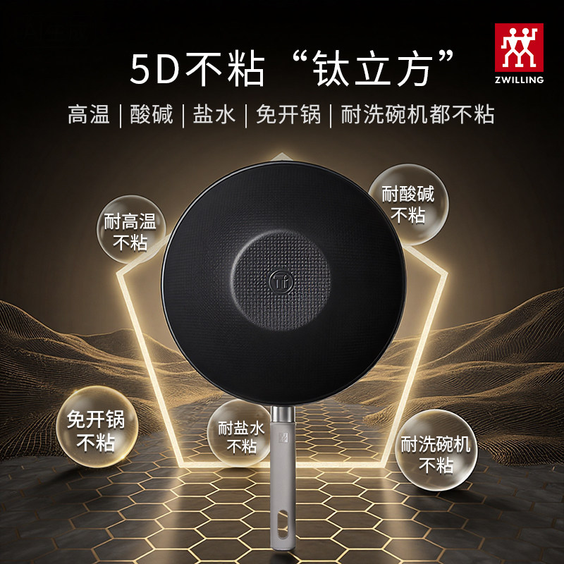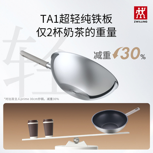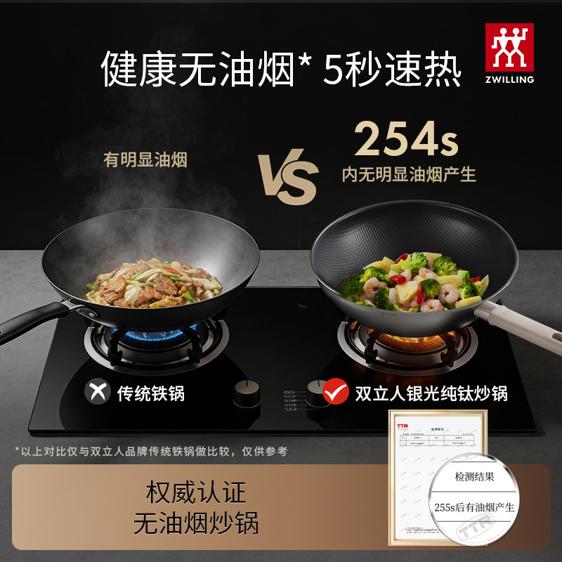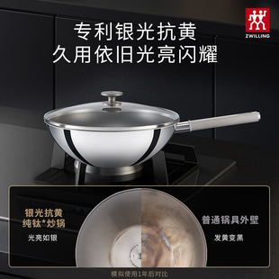 德国双立人纯钛炒锅0涂层家用量轻不锈钢电磁炉Silver II银光