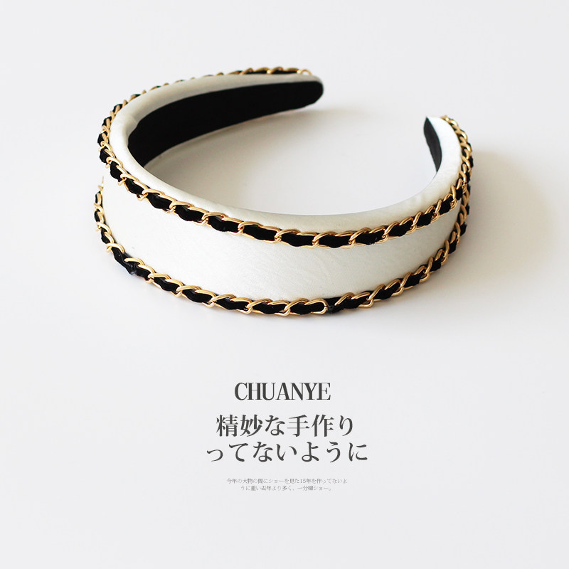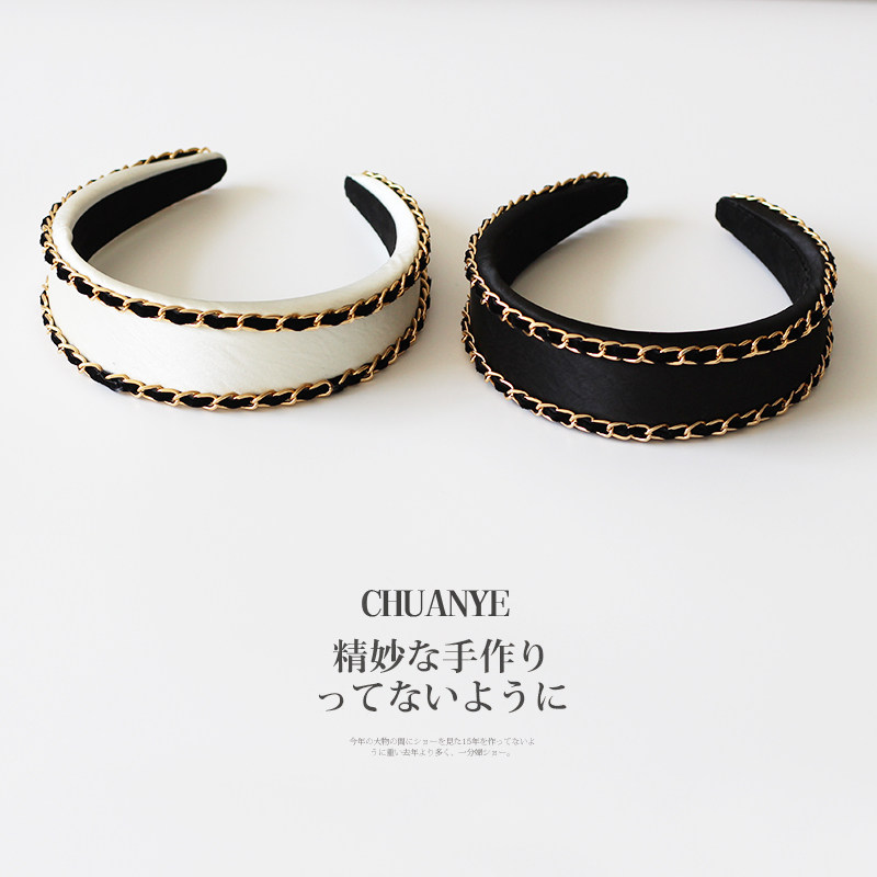 高颅顶压发头箍头饰发饰 轻奢个性 川野法式 黑色链条宽边发箍女新款