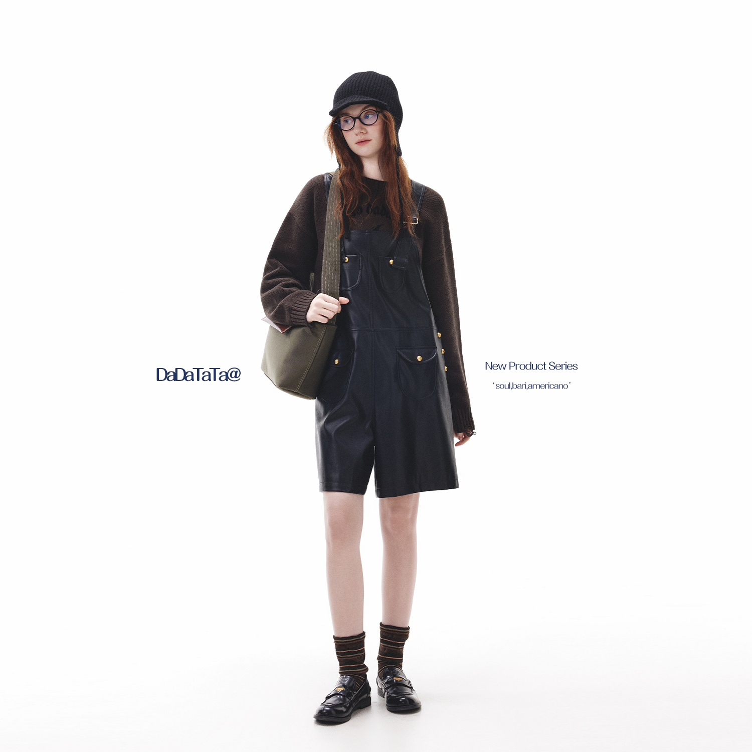 女原创直筒减龄长裤 甜酷风黑色刺绣牛仔背带裤 子 黄油拿铁 织物猪