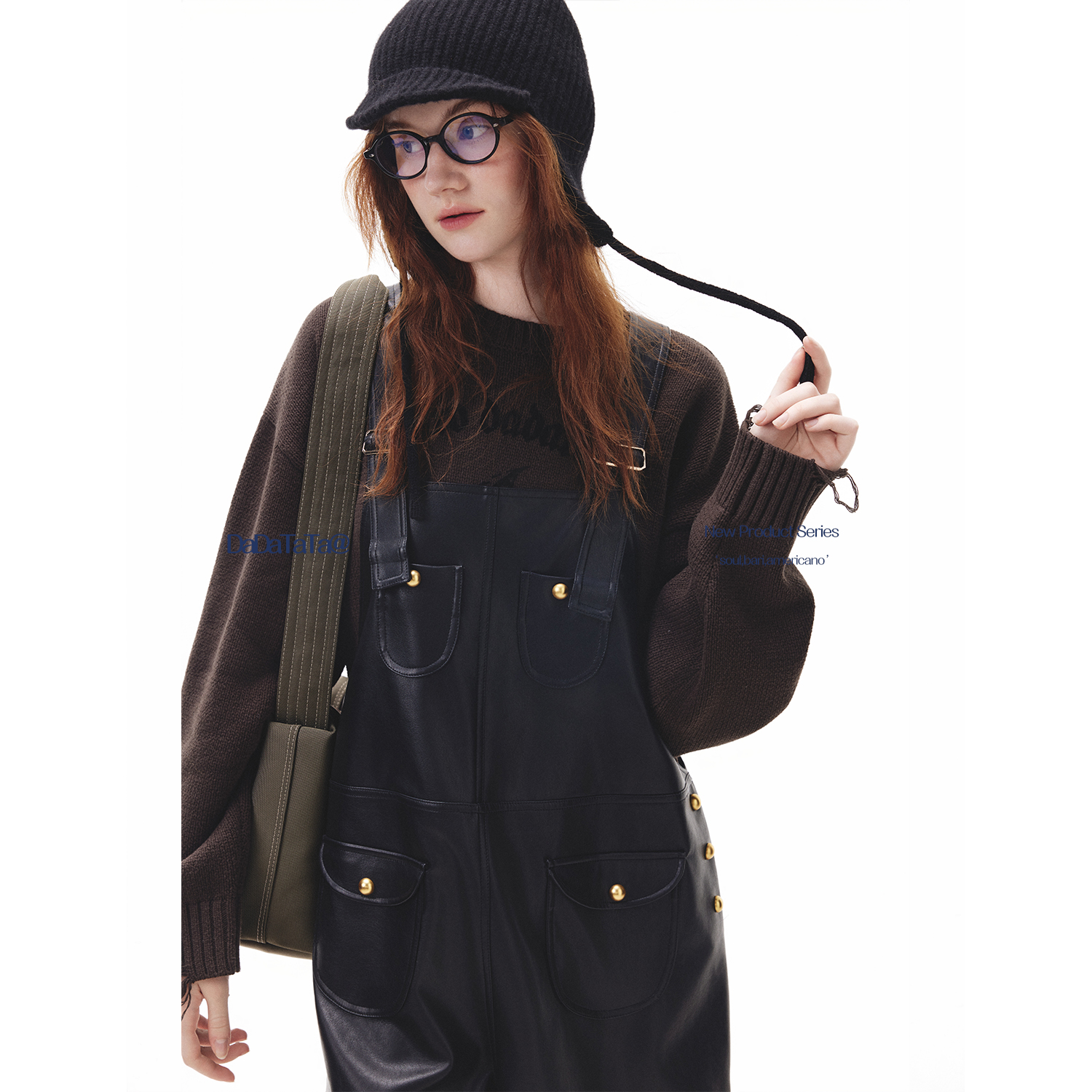 大口袋背带牛仔裤 长裤 女春秋款 休闲裤 宽松直筒裤 万有引力博物馆