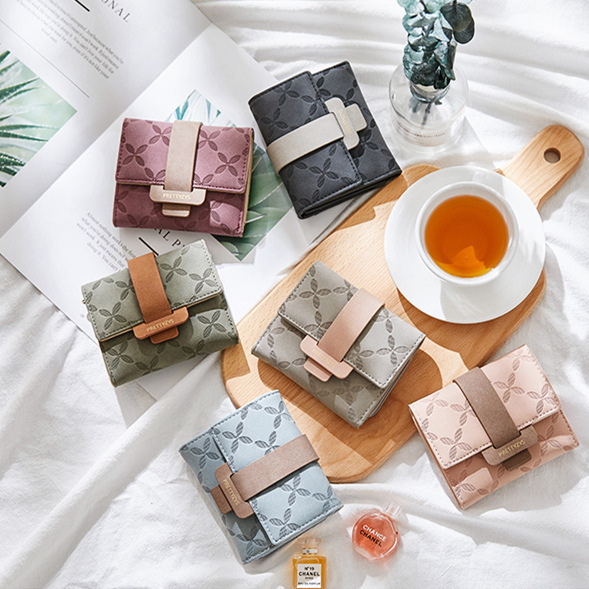 ins清新时尚 日本品质2025秋季 钱包韩版 短款 花朵纹搭扣女士学 新款