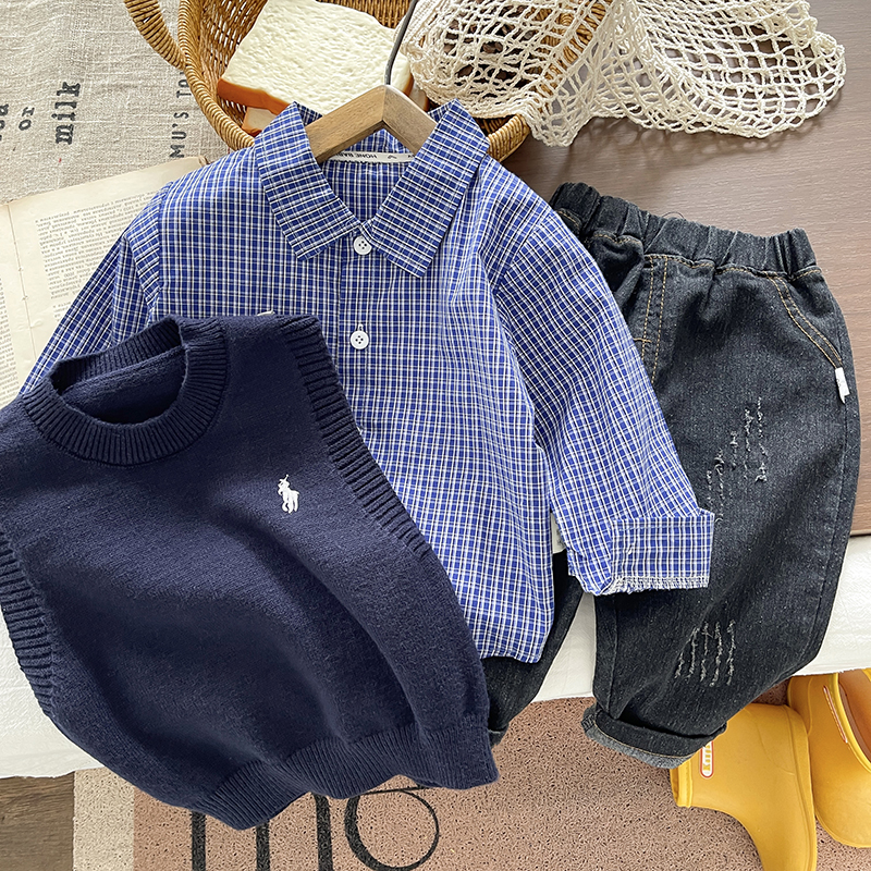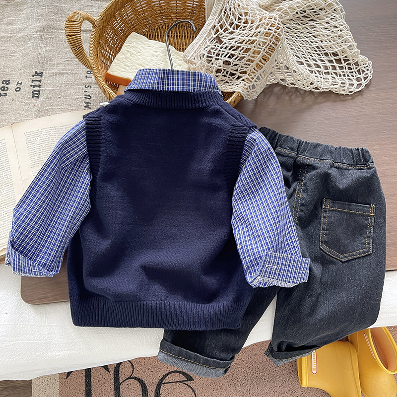 中小童宝宝洋气儿童春秋季 新款 毛衣马甲三件套潮 套装 2025男童春装