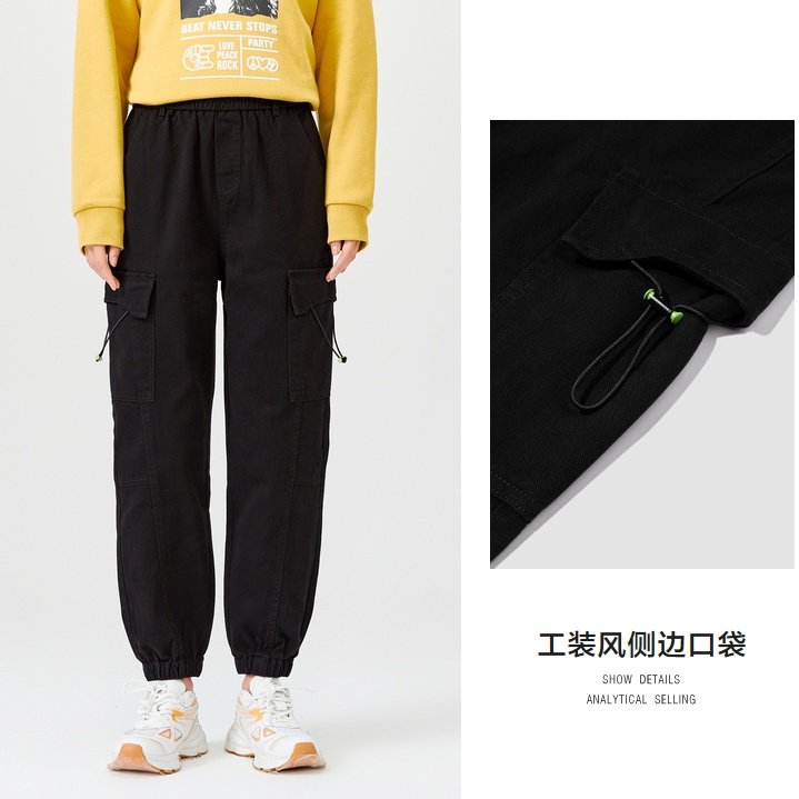 休闲松弛运动裤 女灰色修身 子 黑色微喇直筒低腰卫裤 asomesome美式