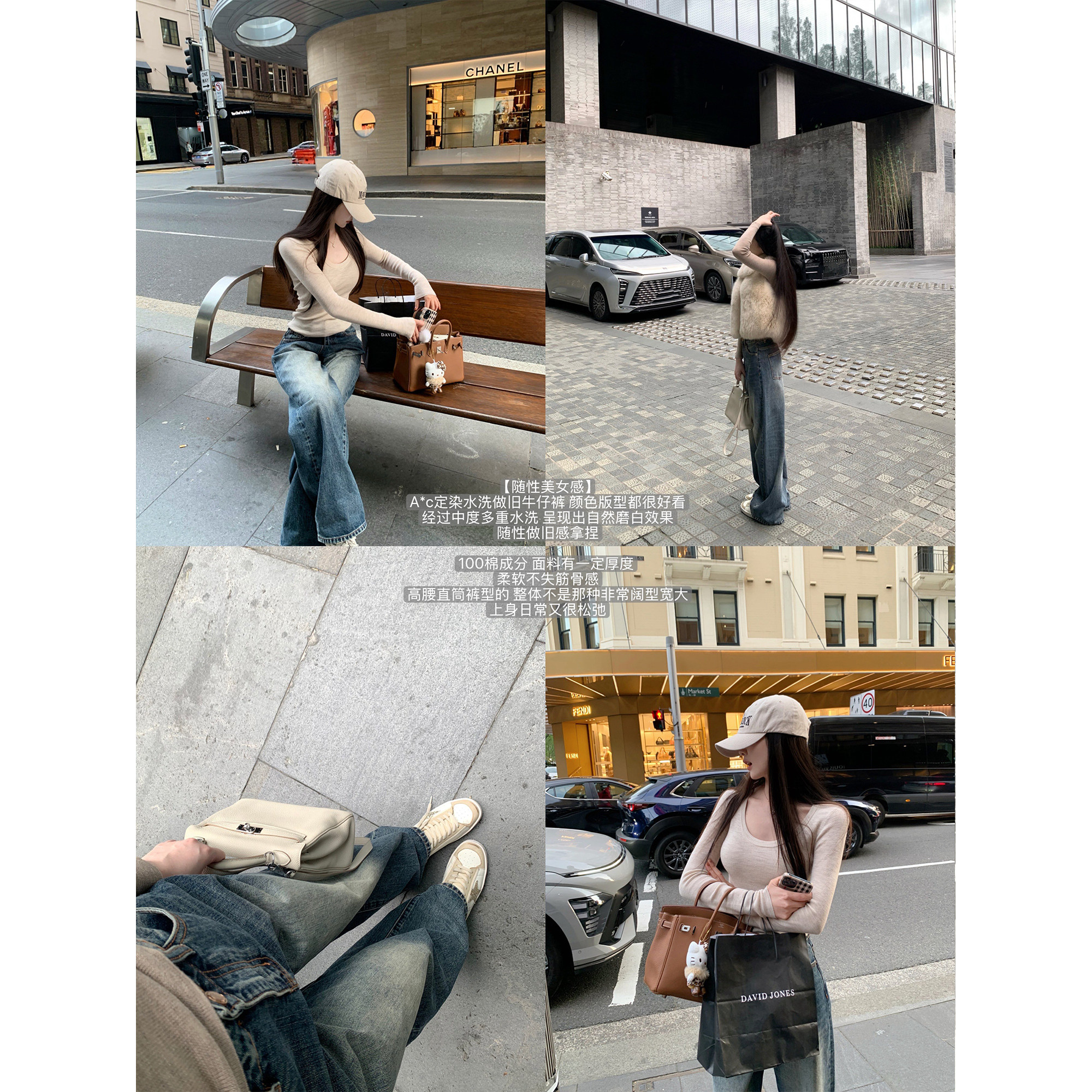 Ac100棉多重水洗松弛做旧慵懒宽松牛仔裤 随性美女感 WONG POET