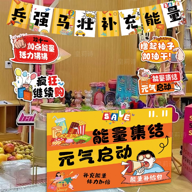 双十一装 饰挂旗氛围布置能量加油补给站挂布电商公司活动激励拉旗