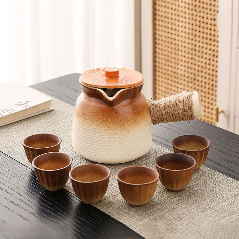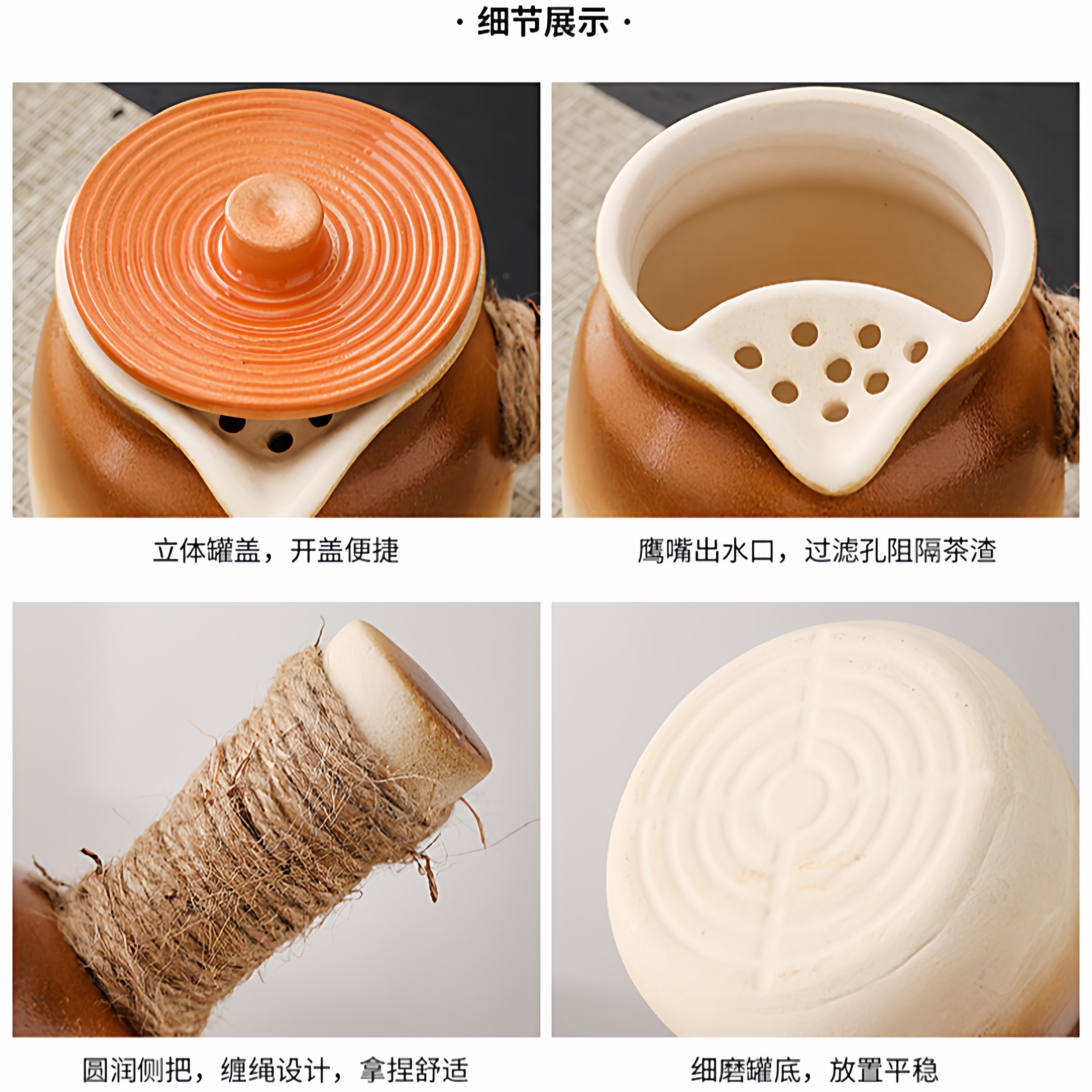 柴烧围炉煮茶壶温茶提梁侧把壶复古手提粗陶简约茶具水壶中式 泡茶