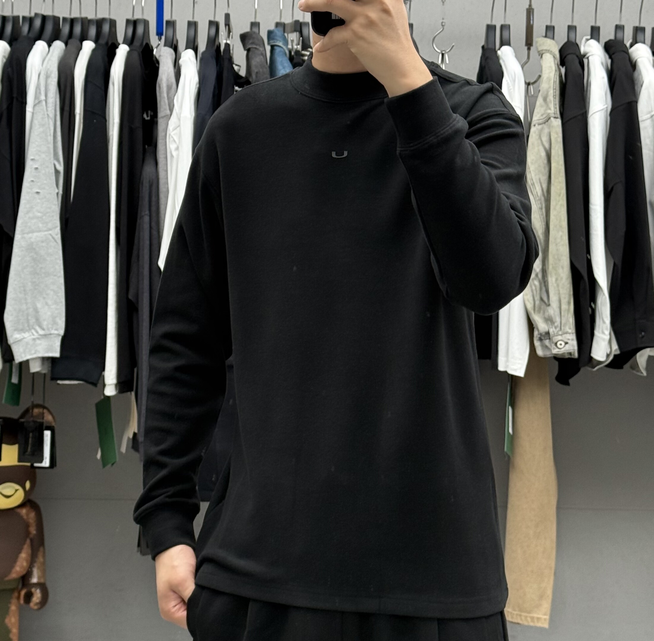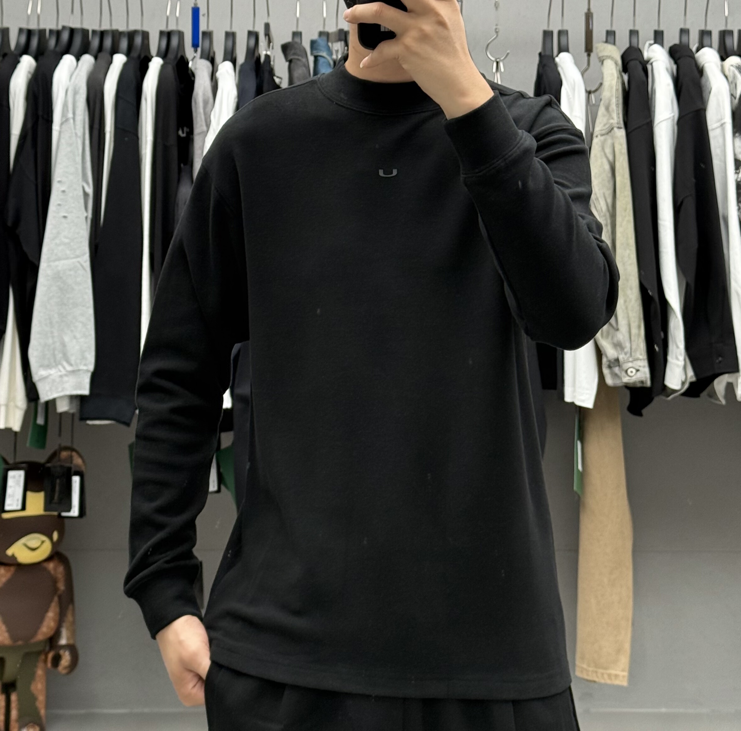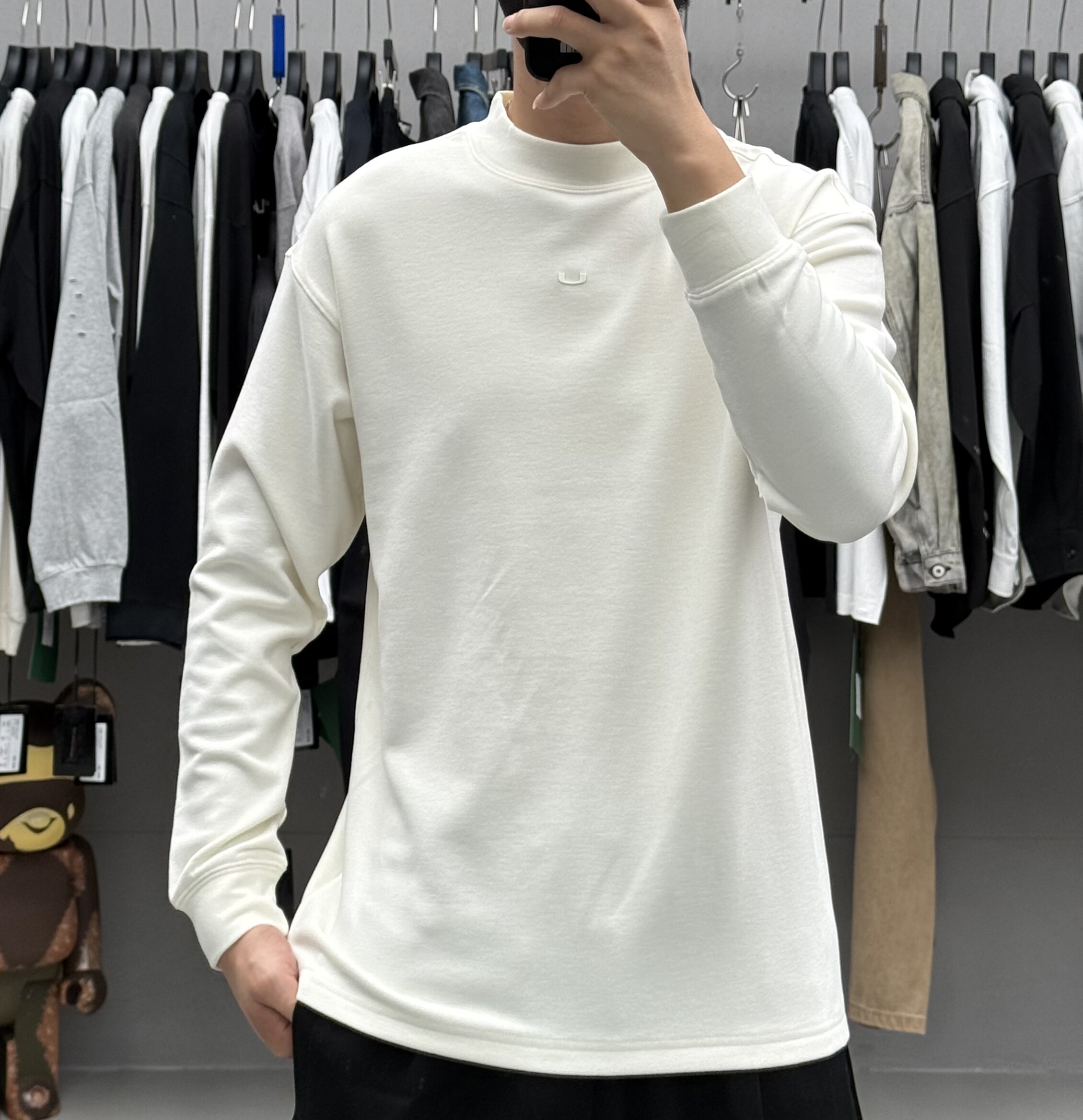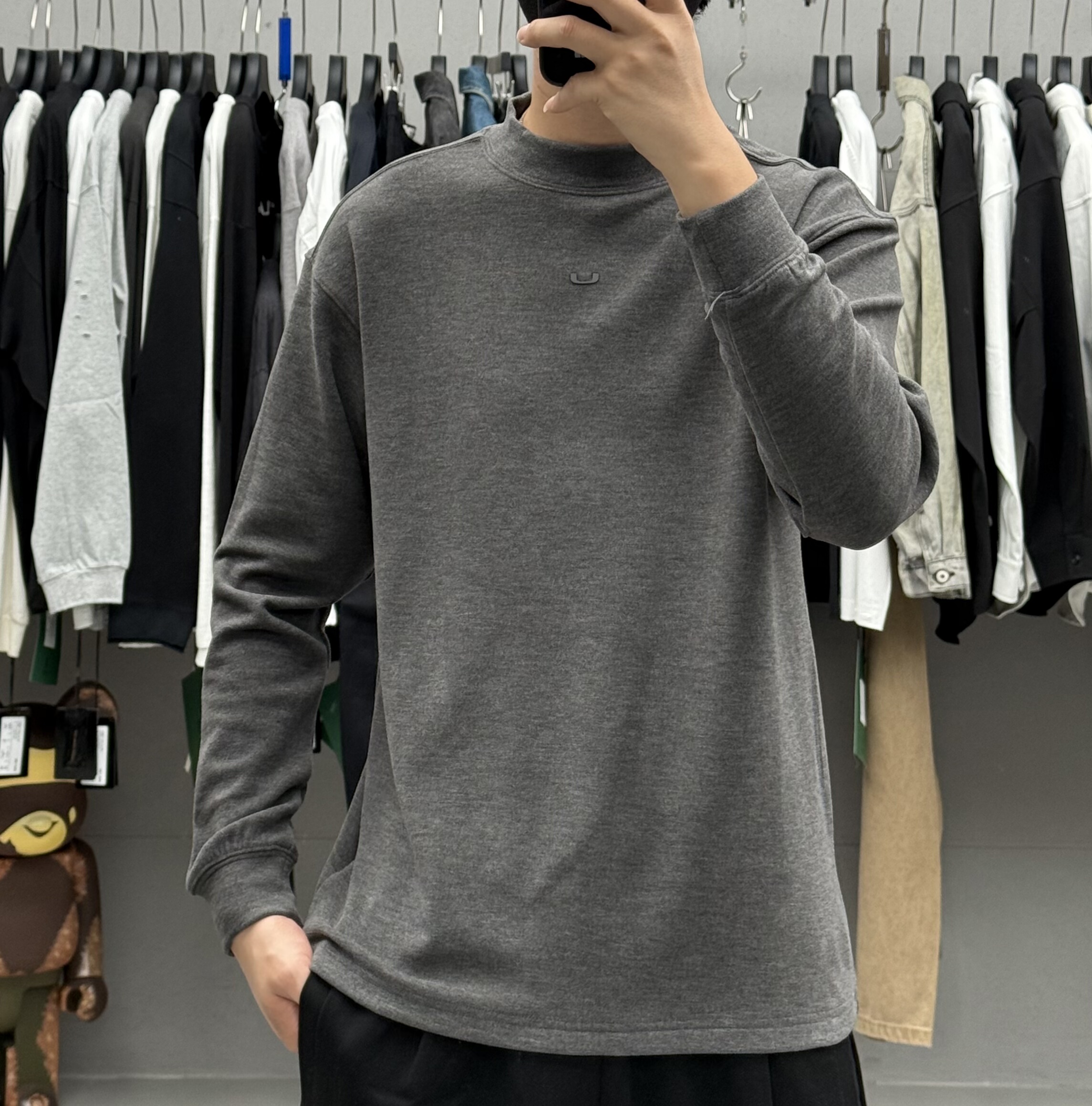 高级感简约纯色磨毛中领长袖 T恤男秋冬韩系弹力保暖亲肤舒适打底t
