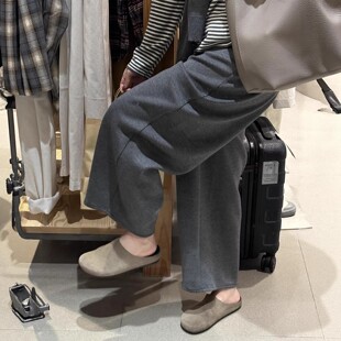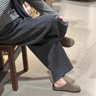 150 七分弯刀休闲裤 灰色奶皮裤 女秋冬加绒145小个子穿搭糯米香蕉裤