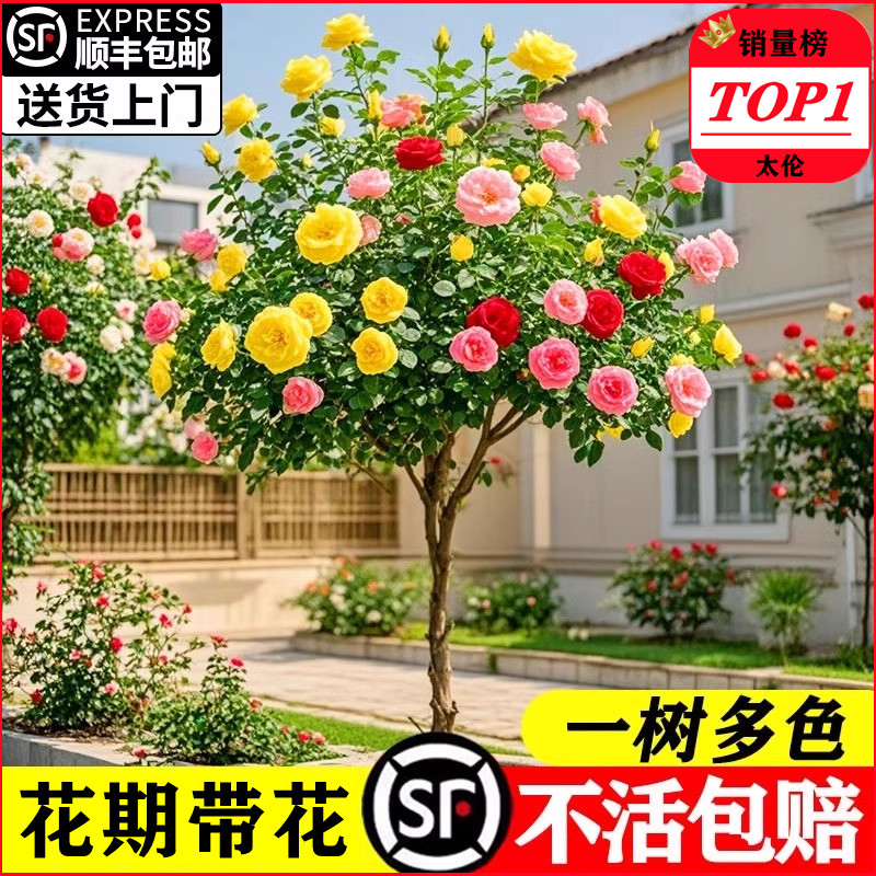 棒棒糖树桩月季 植物庭院老桩玫瑰花树苗 花苗盆栽花卉特大花朵四季