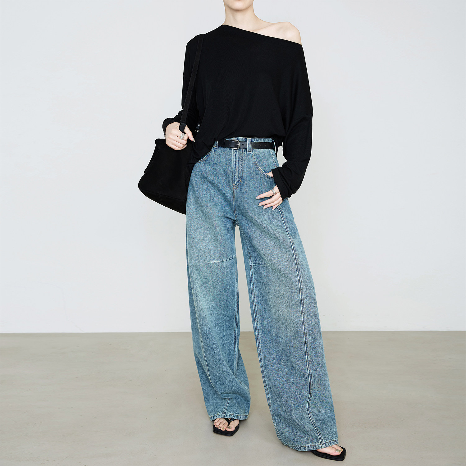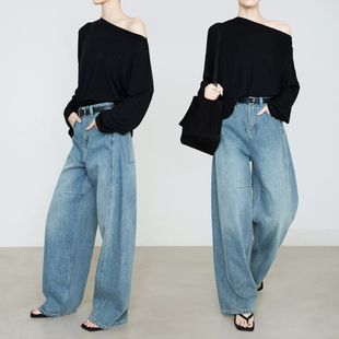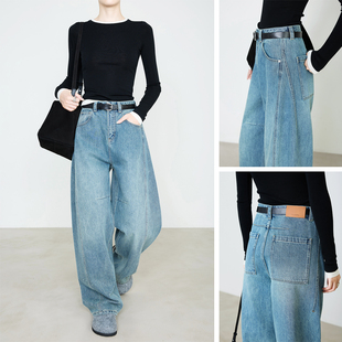 拖地裤 黑色高腰阔腿牛仔裤 直筒宽松显瘦小个子窄版 秋季 女2025新款
