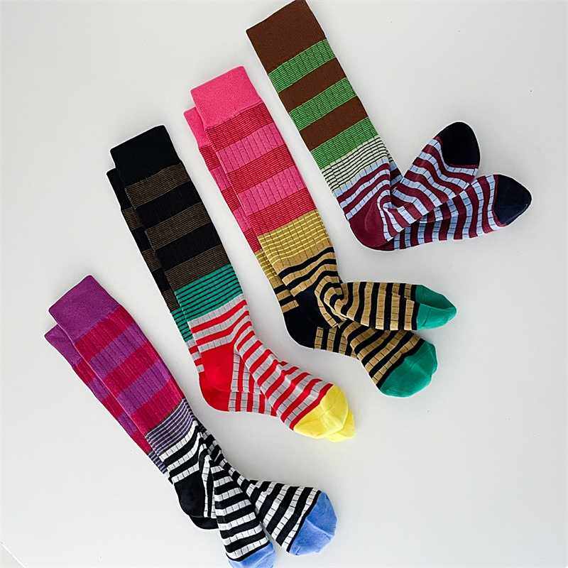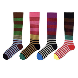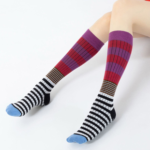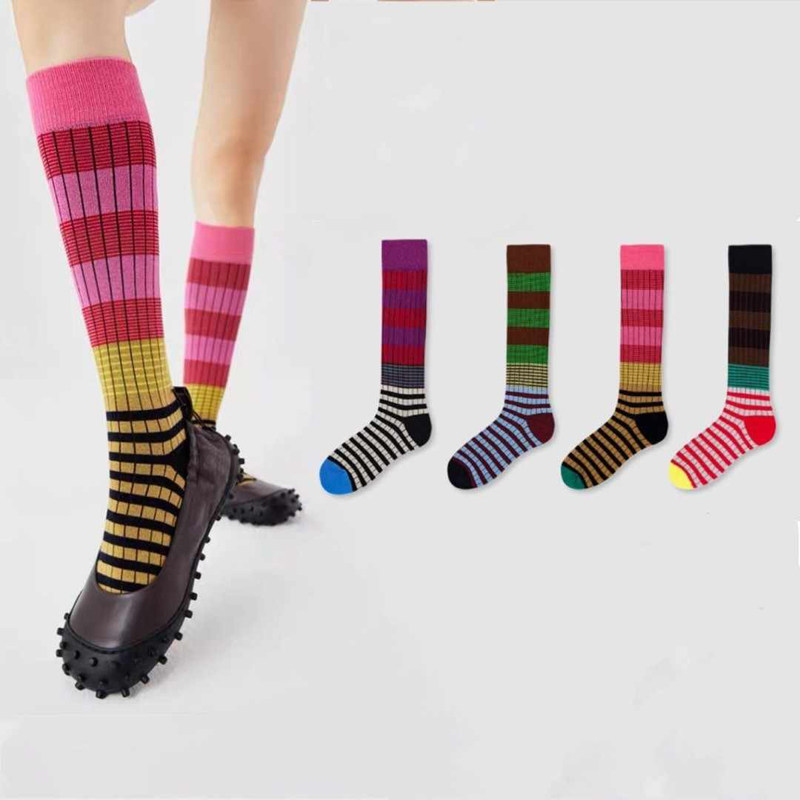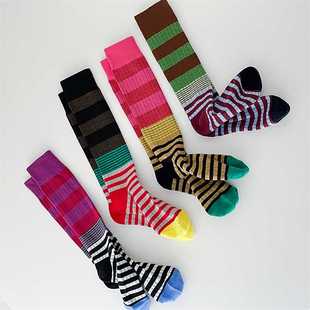 小腿袜撞色复古条纹美式 小众设计彩色三节奏户外穿搭巴恩风穿搭