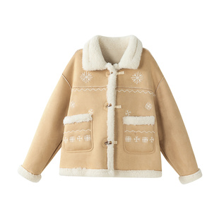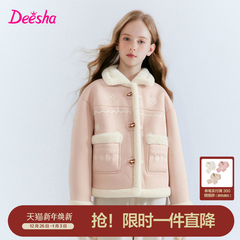 女孩儿童麂皮保暖羊羔绒 新款 笛莎官方旗舰童装 女童外套加绒秋冬季