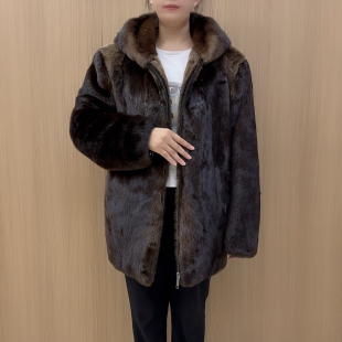 连帽方领高档进口皮草冬男大衣 水獭外套高品质中长款 2025新款 男士