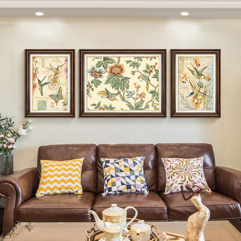 复古H油画欧式 饰画客厅沙发背景墙挂画法式 大气三联画高级 装 美式