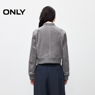 ONLY奥莱 饰盖袋利落正肩短款 春季 棒球风胸前装 皮衣外套女 新款