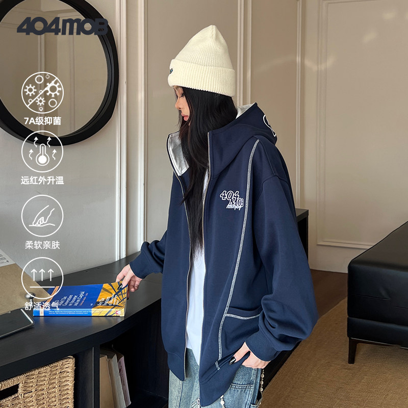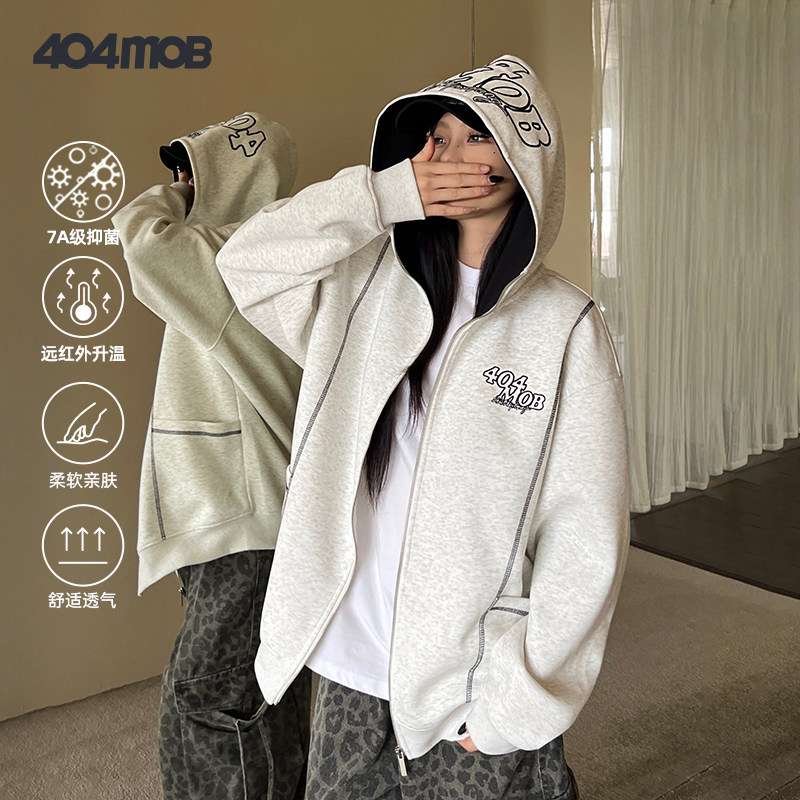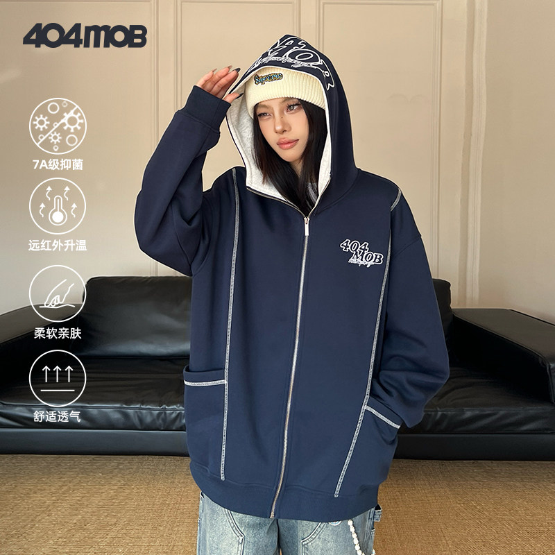 复古潮牌情侣夹克外套男女款 404MOB明线设计重工刺绣开衫 卫衣美式