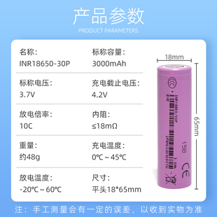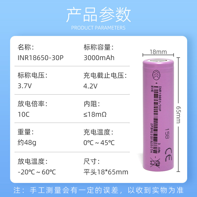 亿纬18650锂电池10C动力电芯3000mAH大容量30P大功率电动工具电池