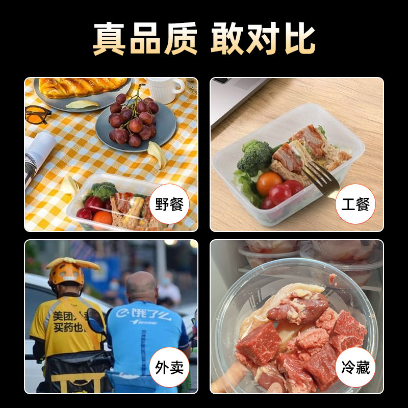 一次性餐盒圆形打包盒长方形饭盒加厚食品级塑料碗外卖盒家用带盖