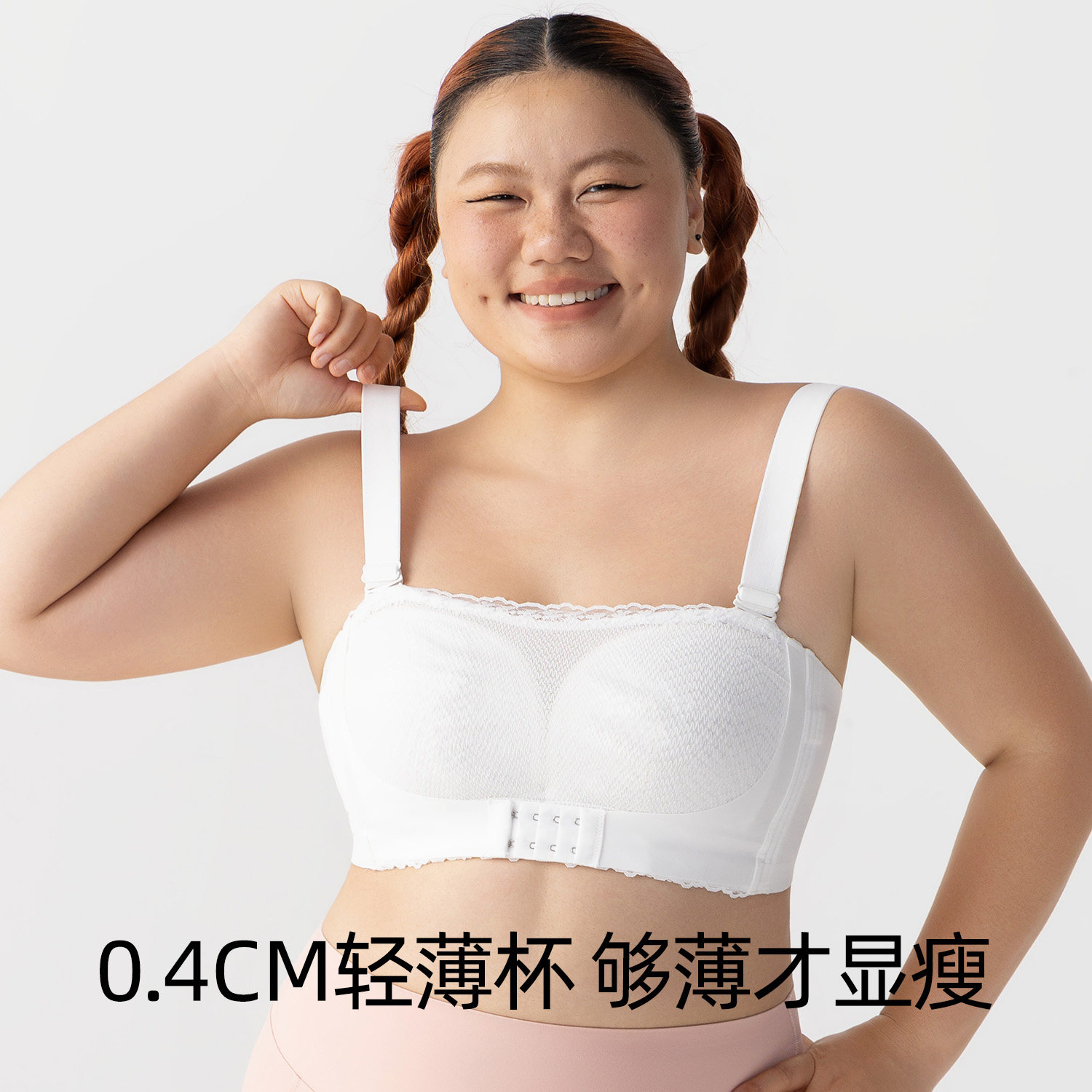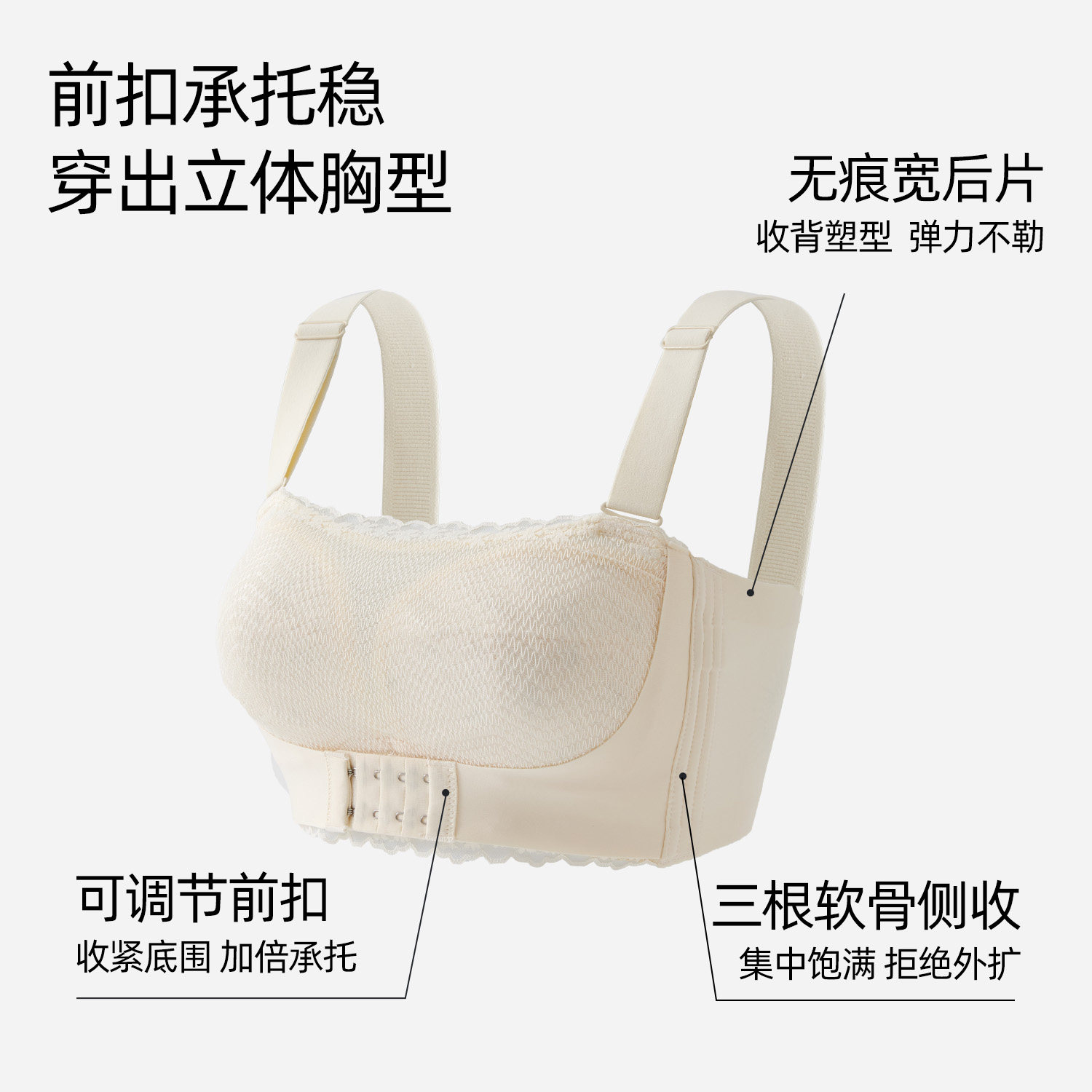 六只兔子前扣内衣女大胸显小防下垂胸罩可拆卸无肩带大码 文胸