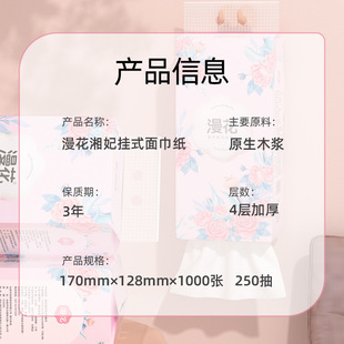 漫花1000张 抽纸柔软面巾纸可湿水擦脸原生木浆 提四层加厚悬挂式