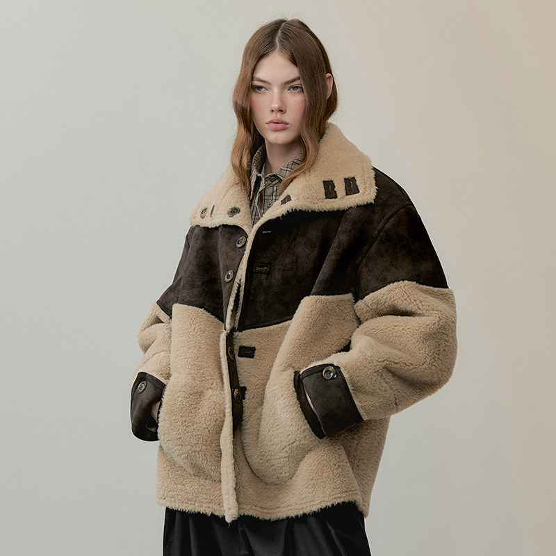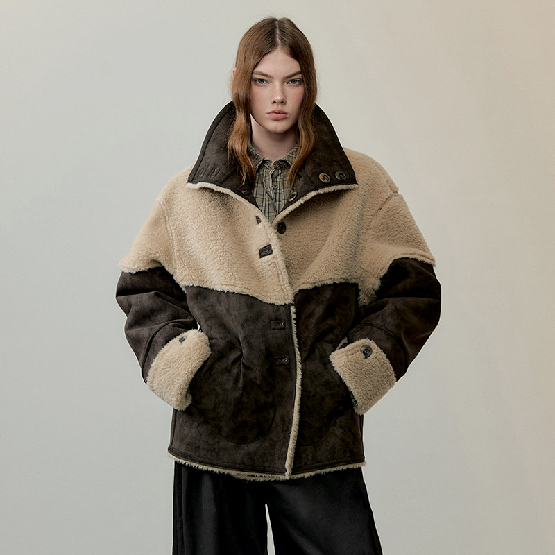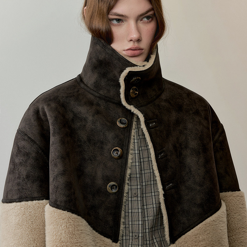 创世纪元 皮草女两面穿皮毛一体拼接立领外套毛毛外套 月壤裁光
