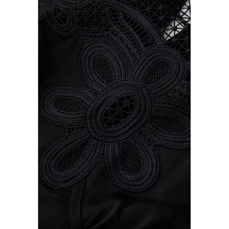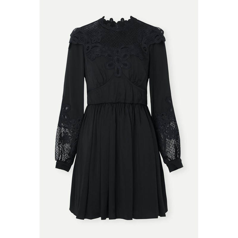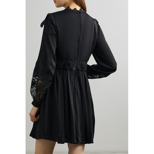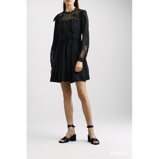 性感气质修身 连衣裙女秋季 针织长裙 黑色U领网纱拼接长袖 instahot